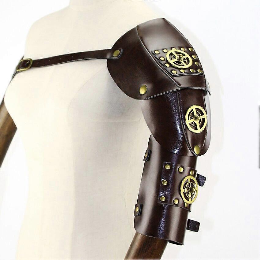 Steampunk Arm Guard Retro Gear Mechanical Medieval Cyberpunk Leather Shoulder Armor Archer Shield Prop Cosplay Anime Accessory