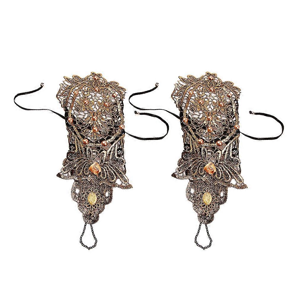 Steampunk Lace Embroidered Wristband Fingerless Gloves With Pearls Elegant Lace Arm Sleeves For Historical Reenactments 2Pcs