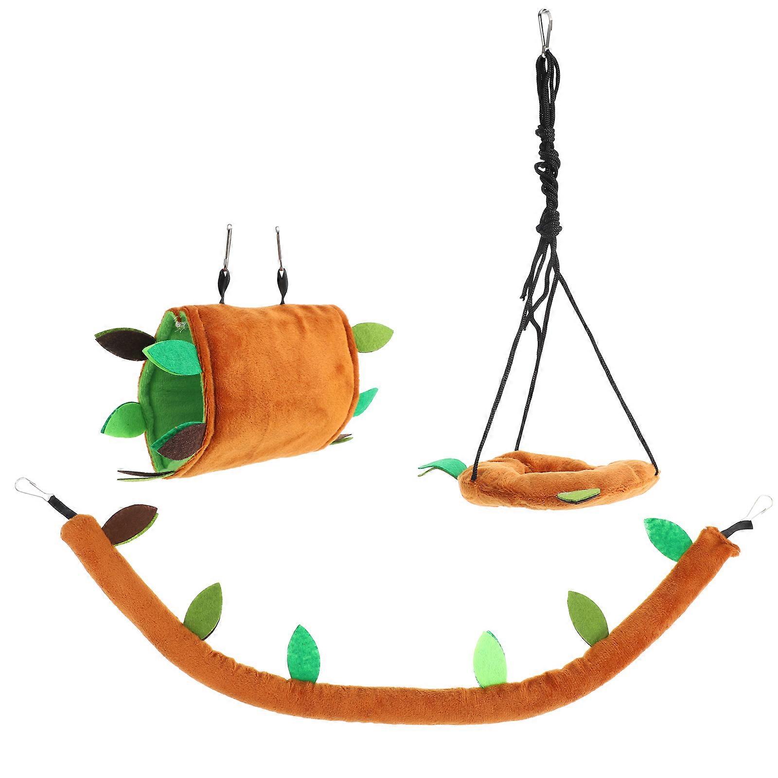 Small Pet Cage Accessories Set Of Pet Hamster Cage Hanging Toy Plush Tunnel Brown For Entertainment 1Set