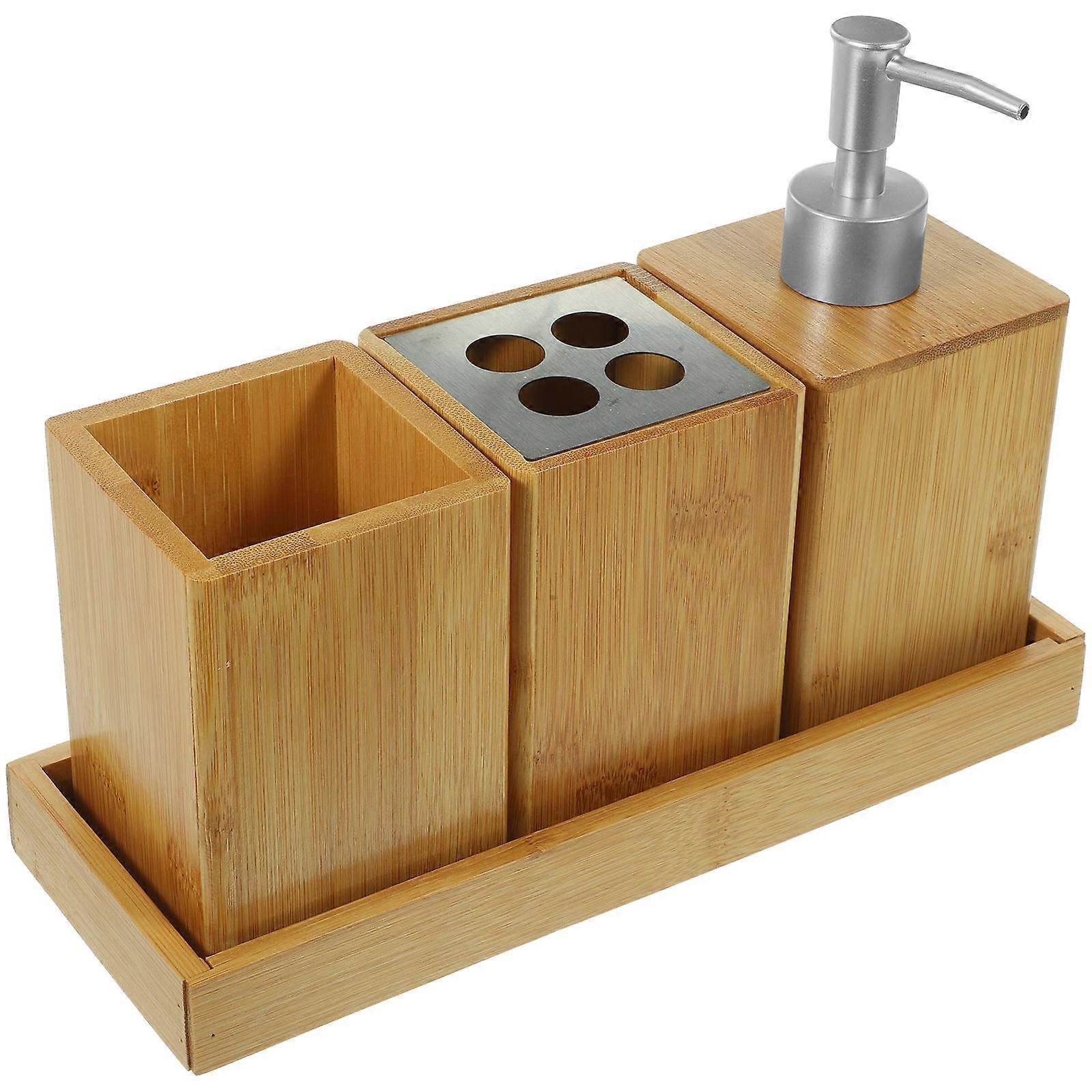 Bathroom Accessories Set Bamboo Toothbrush Holder Mouthwash Soap Dispenser Housewarming Gift 1Set