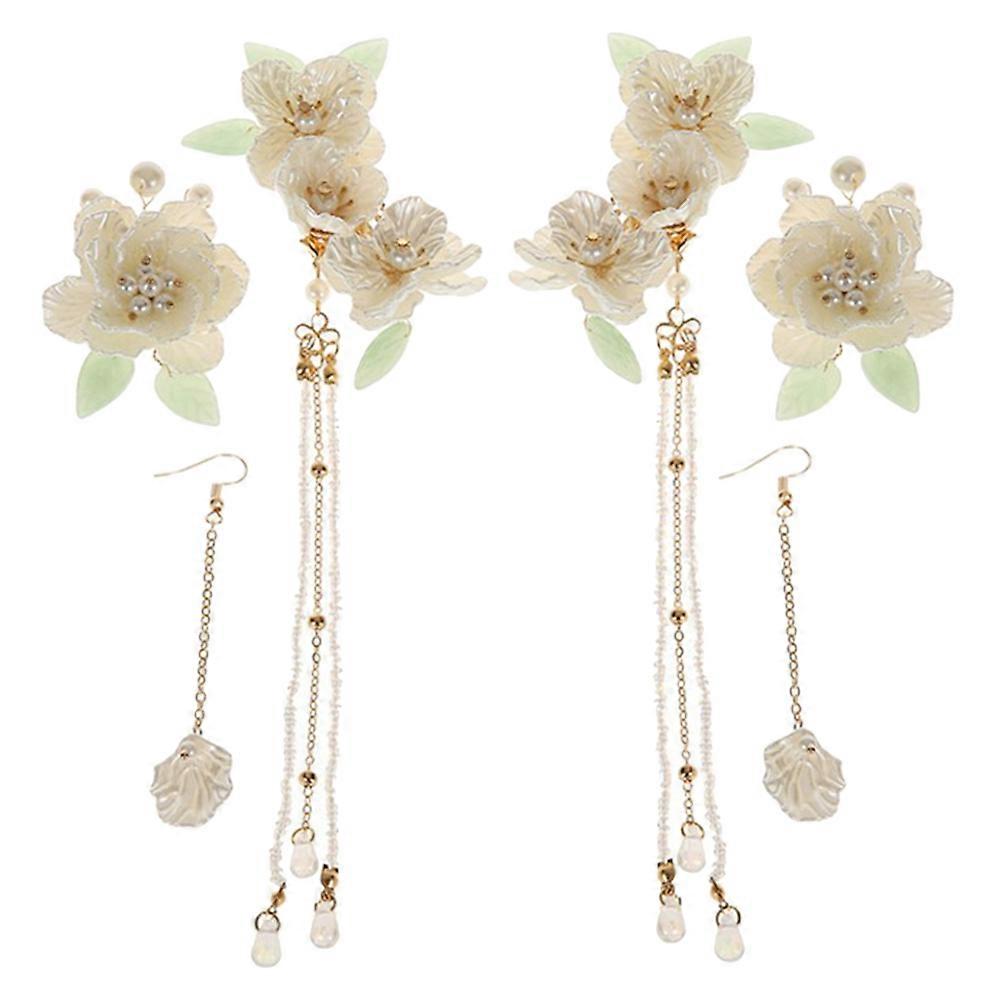These are delicate hair clips and earrings for women and girls, you can use to match with dressing style. Made of , not easy to fade, deform or break. With flower design tassel drop style, and color, perfect for dating, birthday, wedding and more occasions. Features -Color:Assorted Color -Material:Alloy, pearl, acrylic -Size:17.50X8.80X2.00cm/6.88X3.46X0.79in -Size:6.60X4.10X2.00cm/2.59X1.61X0.79in - Flower design, tassel style, these hairpins are light weight, easy to wear, very festive and attractive. - Our hair clip doesn't pull and damage your hair, you can safe to wear it in a comfortable state. - With tassel drop decoration, these hair clips will surely add your charm and fashion taste even among the crowd. - Can be widely applied for daily dress up, photo shoot, party or family gathering and so on. - The hair clips and earrings are made from premium and sturdy material, not easy to fade, deform or break, durable for . Package list: 1 pair x hair clips 1 pair x earrings 1 pair x tassel hair clips