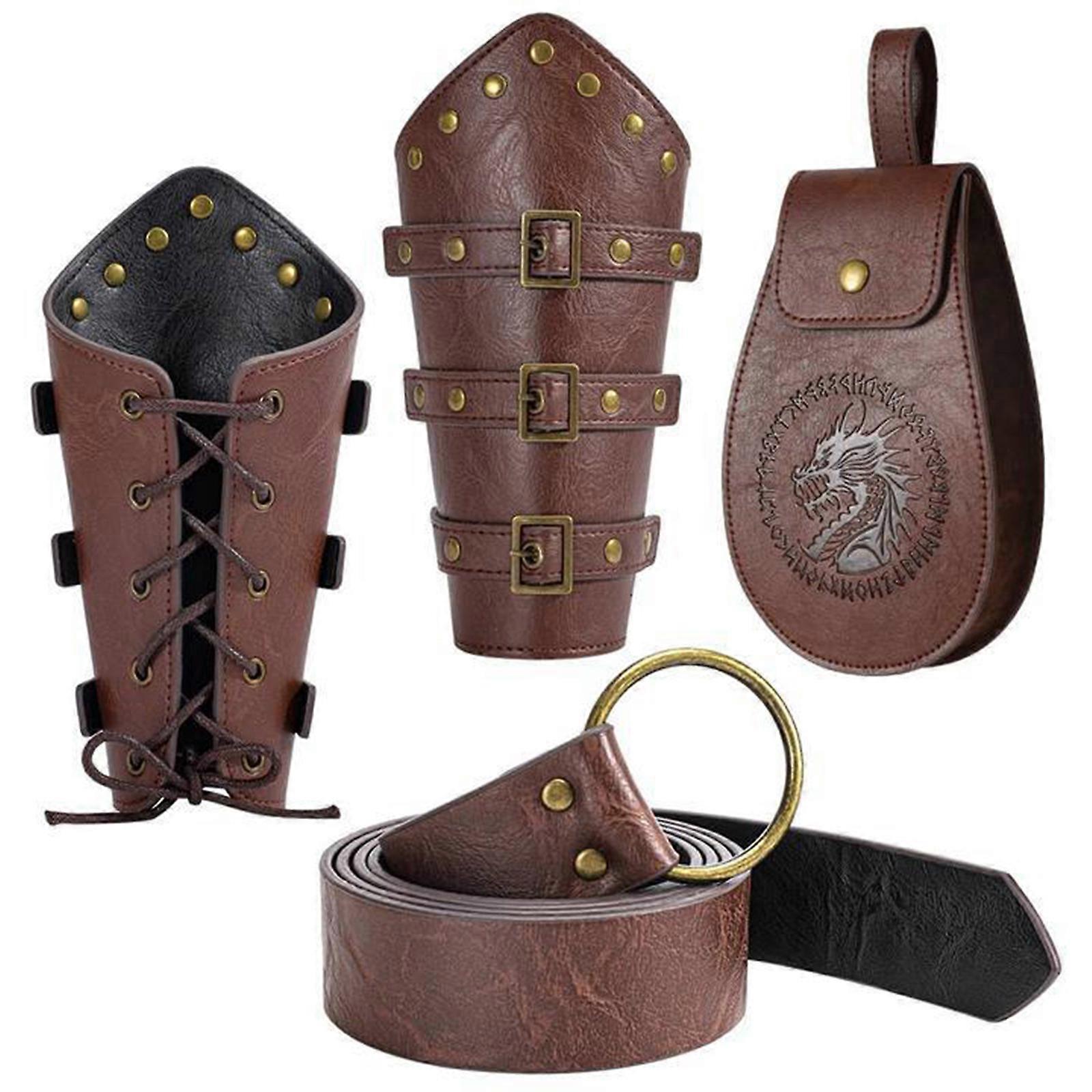 Men's Renaissances Costume Vikinges Costume Accessories Set Medieval Pirate Leather Belt Waist Bag Halloween Costumes brown