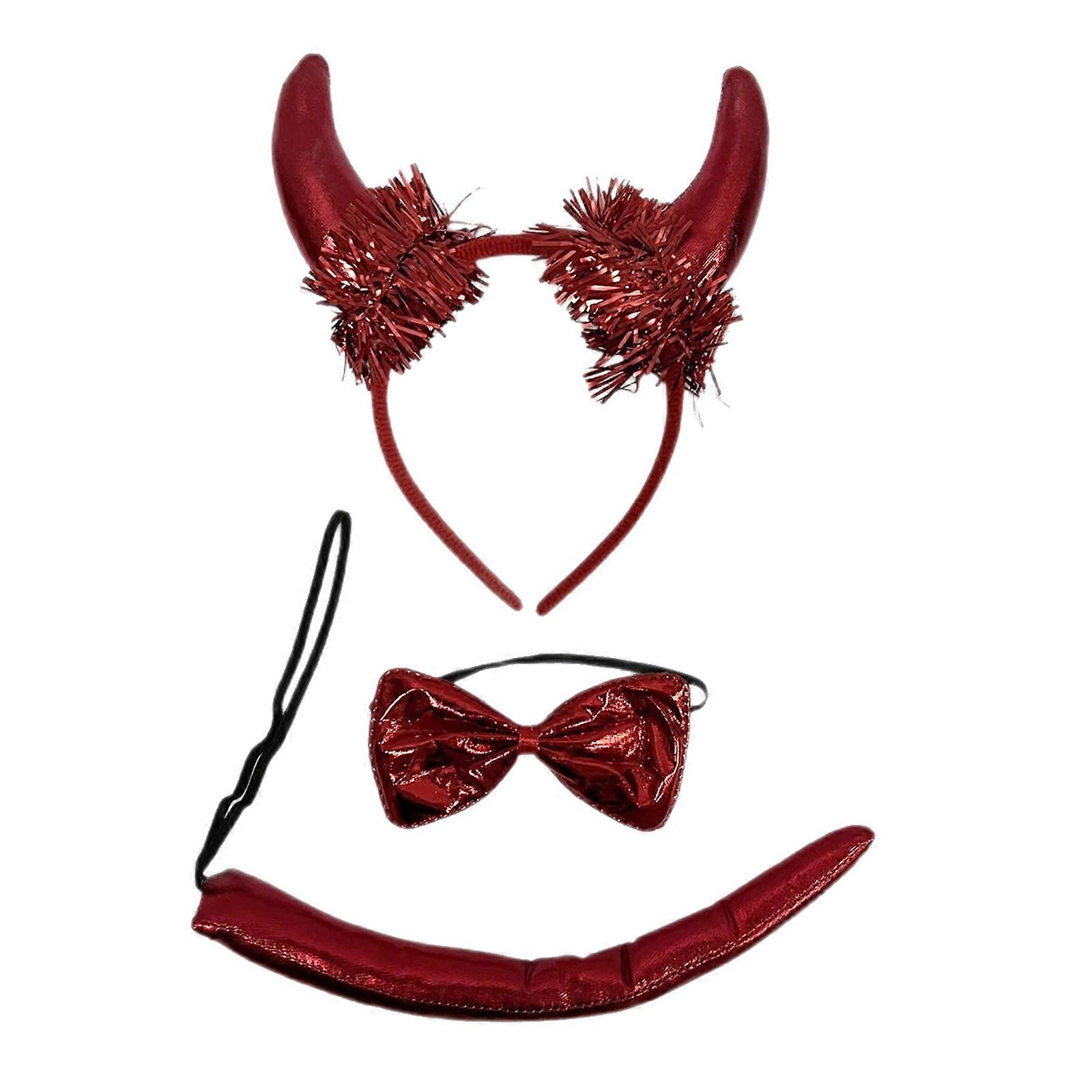 3Pcs Red Devil Costume Accessories Set With Horn Headbands Bows Ties Tails For Halloween Christmas Cosplay Parties Red