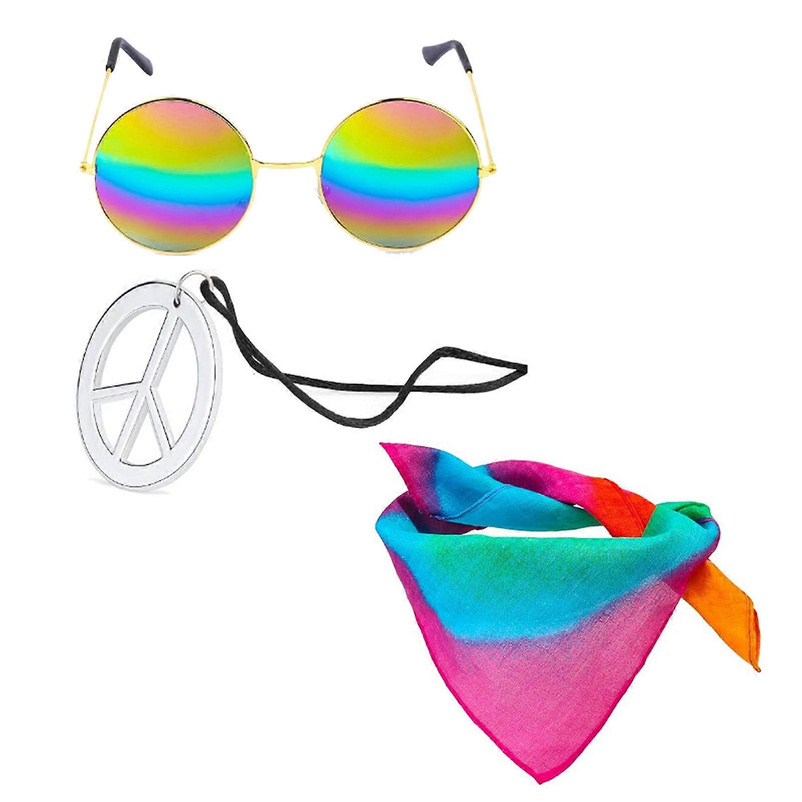 Hippie Costume Accessories Set, Hippy Fancy Dressing Accessory Hippie Headband, Hippie Style Glasses for Theme Parties Set 1