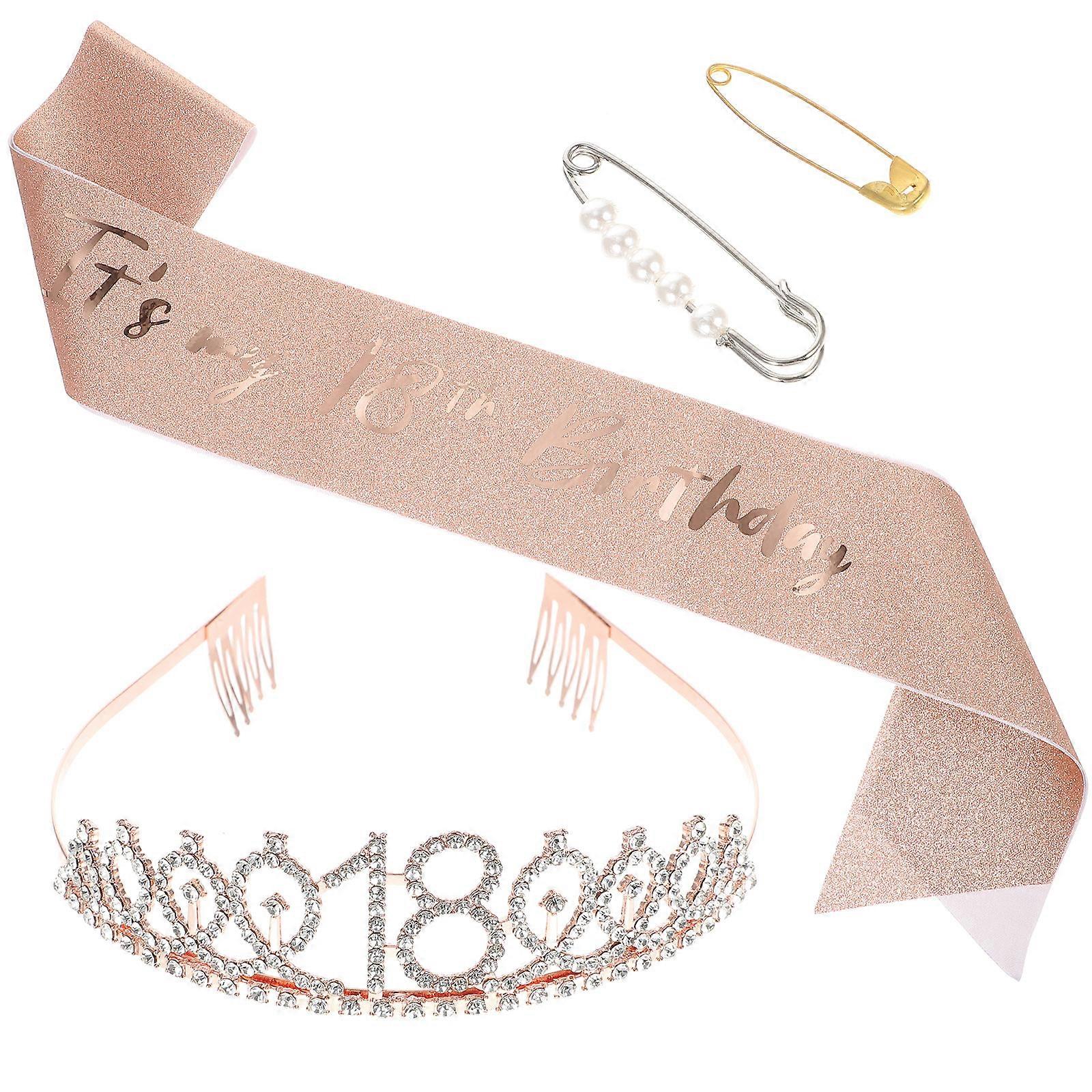 Birthday Sash and Tiara Set with Pearl Pin – Eye Catching Crown Accessories for Women’s Party Outfits and Celebration Decorations