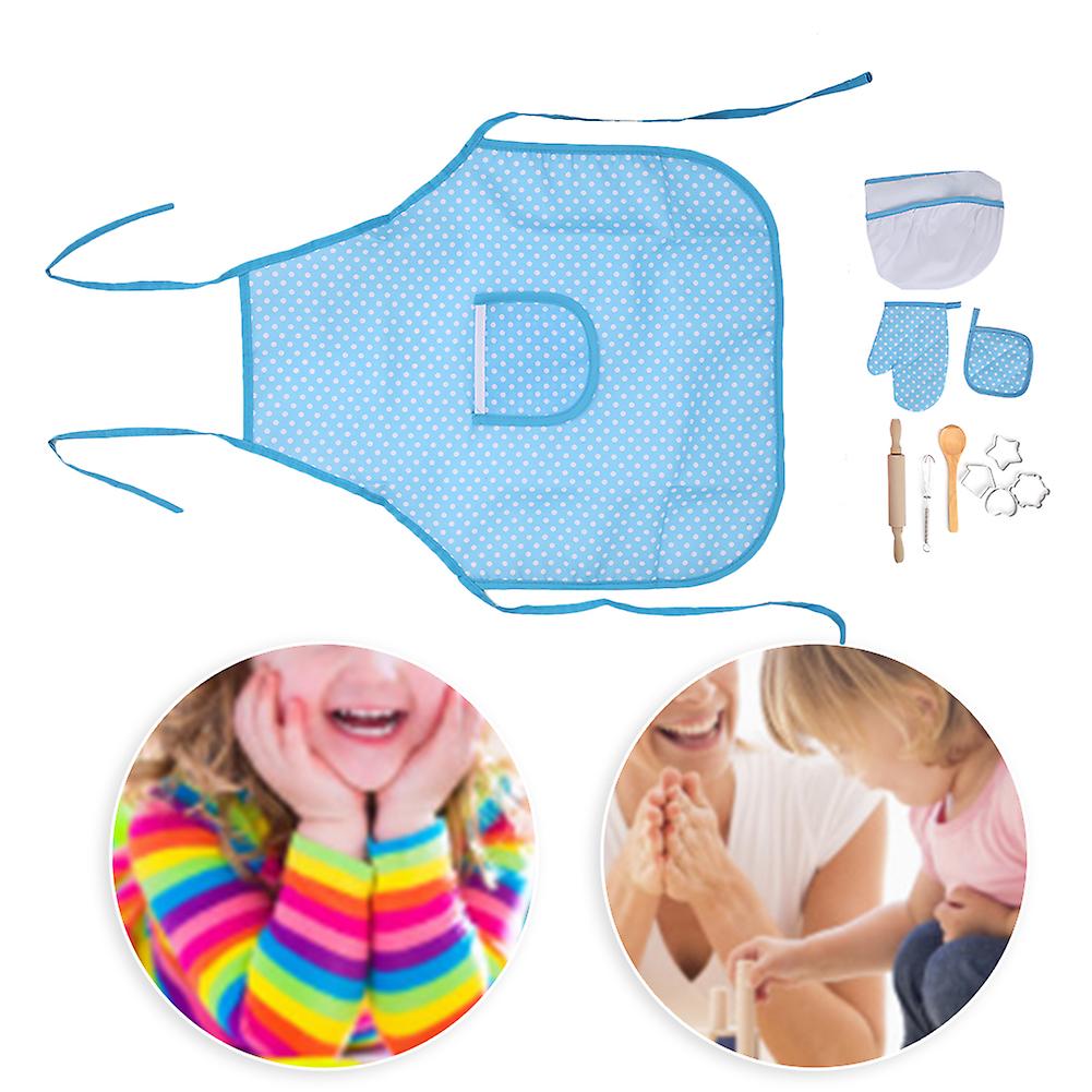 DIY Kid Cooking Baking Set with Apron Blue Dot Toy Gift Age 3+
