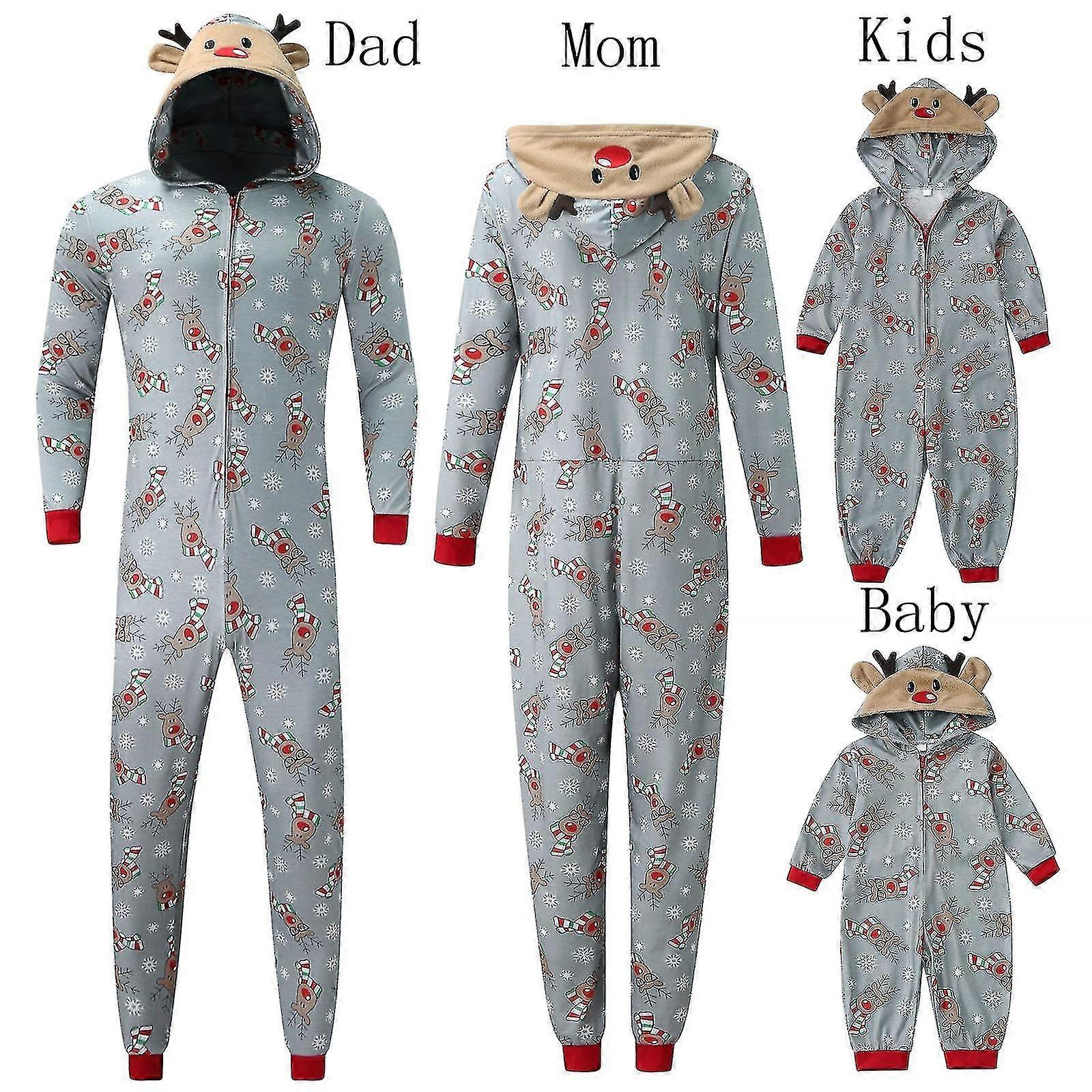 Christmas Family Clothing Set Adult Children Deer Hooded Romper Jumpsuit Family Pajamas Sleepwear Santa Matching Family Outfit