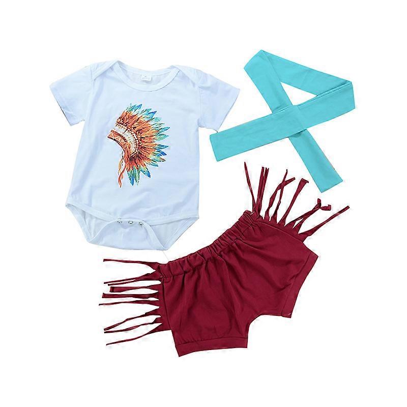 Newborn Infant Baby Girls Clothes Set 2024 Summer Feather Printing Romper+Tassels Shorts+Headband 3Pcs Babe Kids Girls Sets