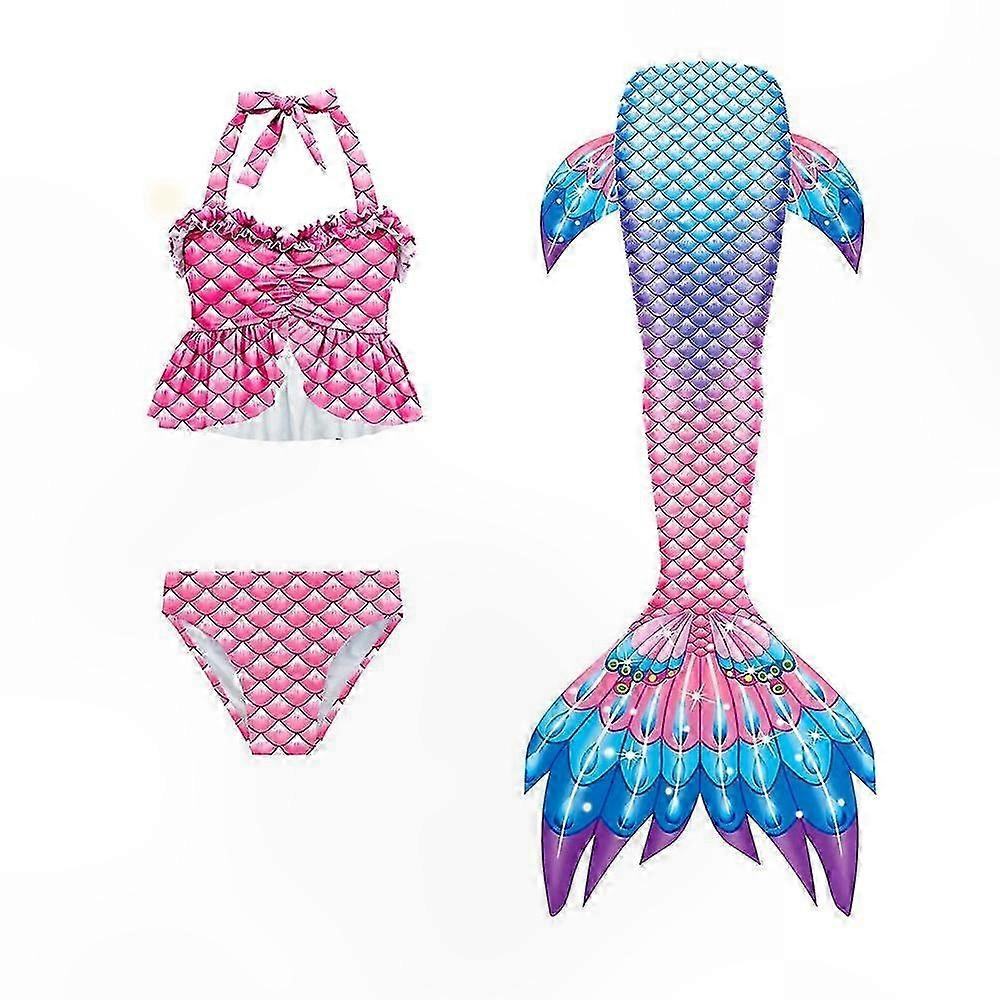 3-Piece Mermaid Tail Swimsuit Set for Kids, Fantasy Beach Costume with Bikini Top and Tail Bottom