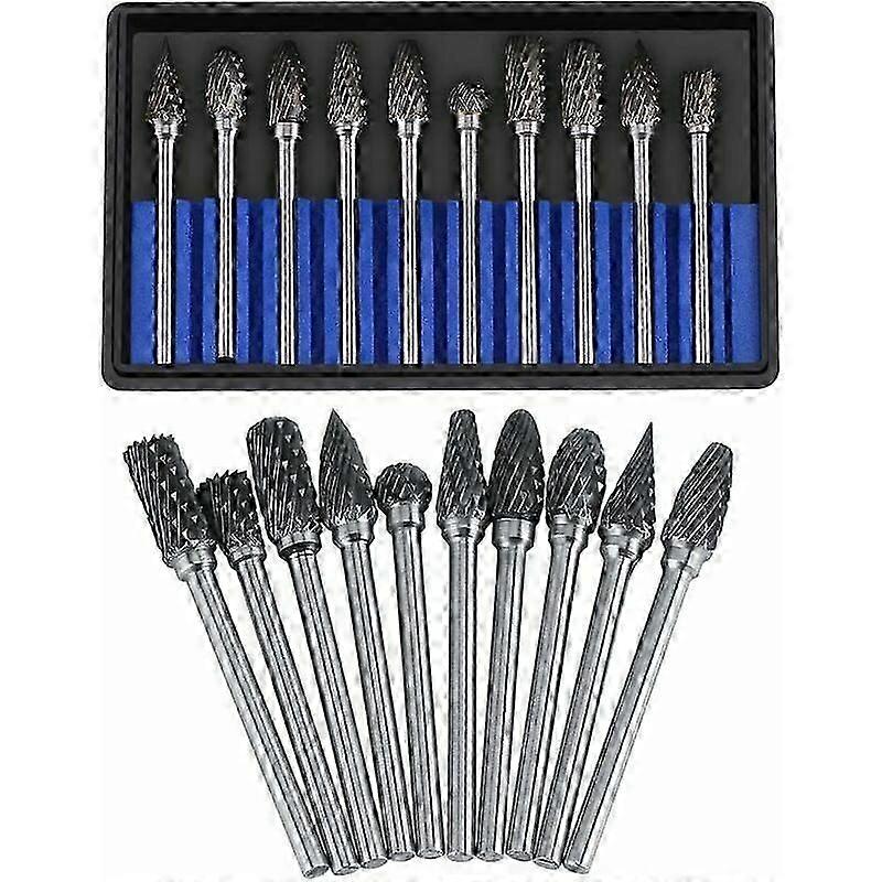 Carbide Burr Set Tungsten Steel Rotary Files 10 Pieces Burr Head Diameter For 3mm 6mm End Mill Shank The Drill Metal Carving Cutting Polishing Gra