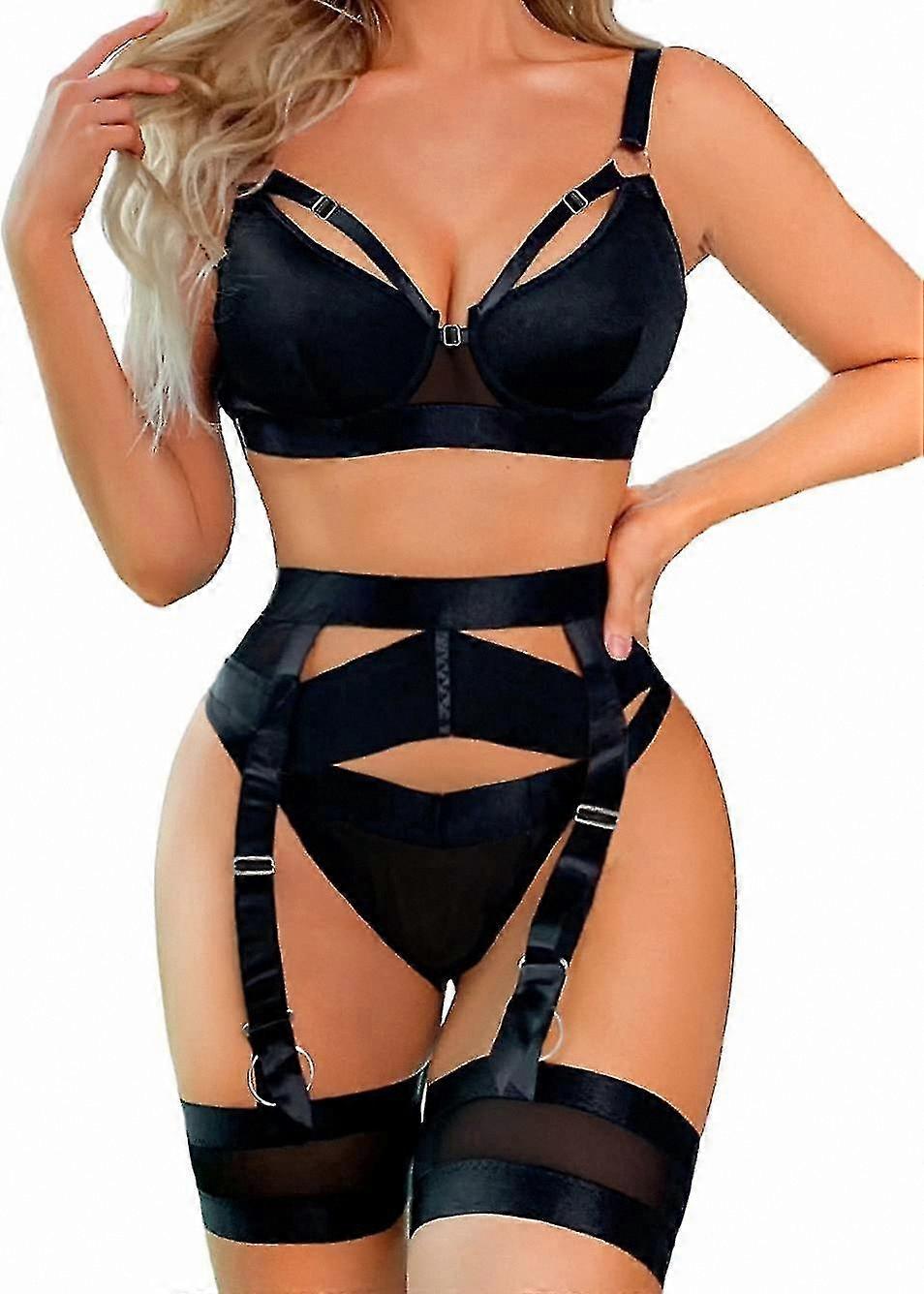 Lace Garter Set for Women, Sexy Sheer Lingerie, 4-Piece Matching Costume Gift for Parties