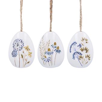 Gisela Graham Set of 3 Blue Meadow Ceramic Easter Egg Decorations
