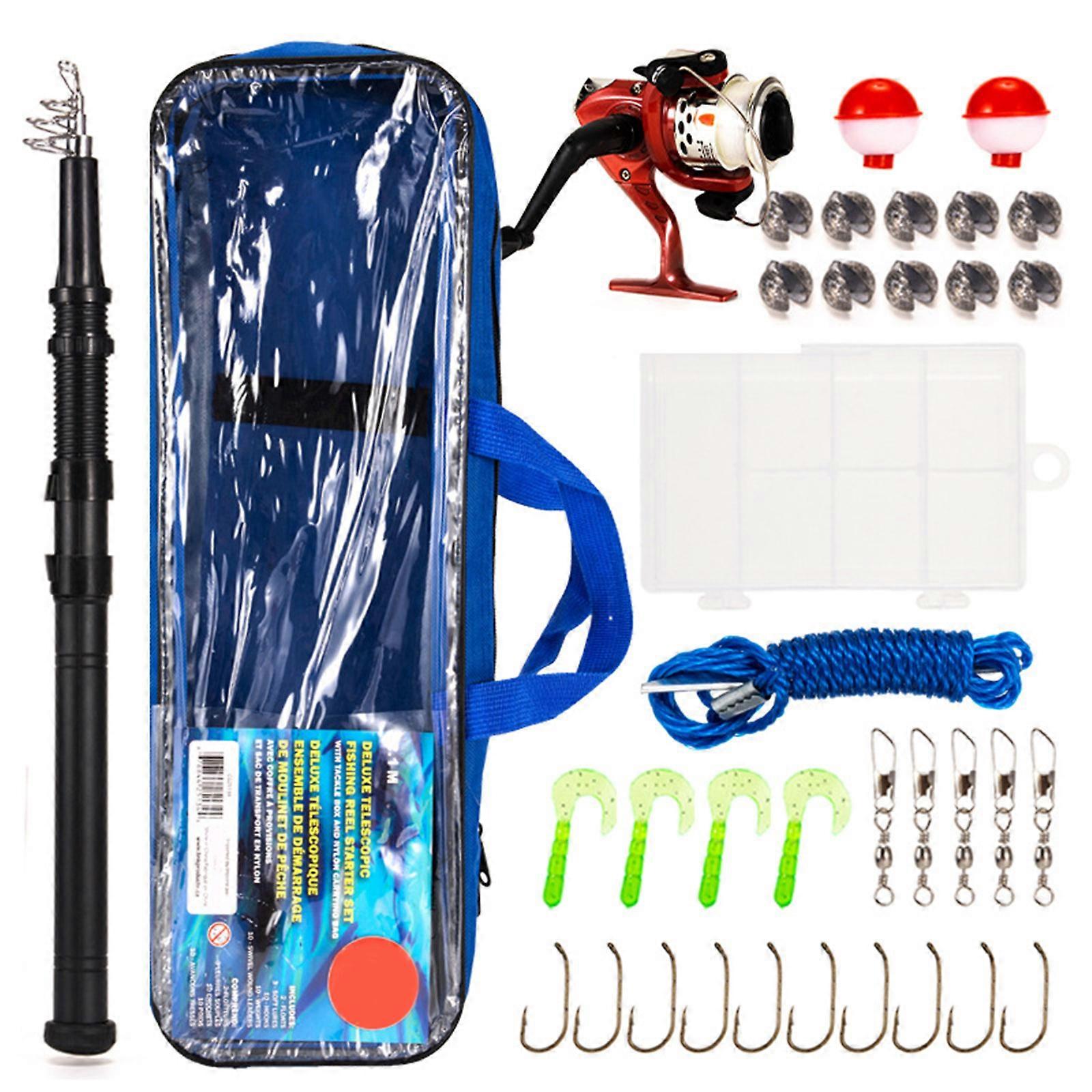 Fishing Set Including Telescopic Rod Float Baits Metal Hook Reel & Storage Bag Fishing Gear Tackles for Adults Teens