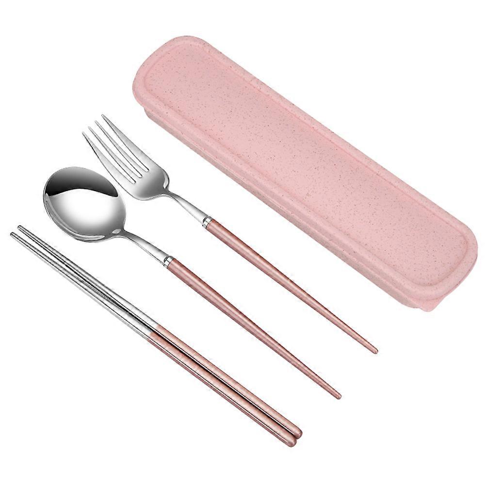 Portable Server Set Stainless Steel Tableware for Eating Food 9Pcs Pink