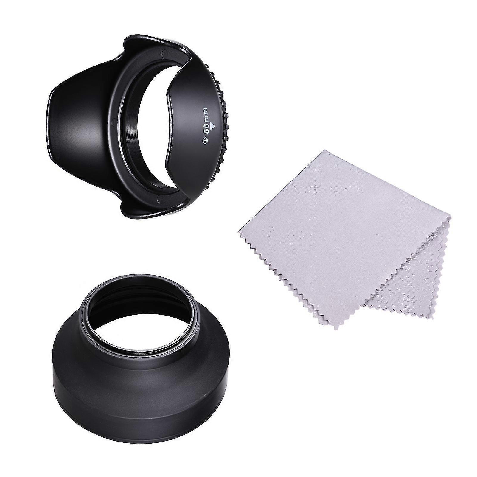 67mm Lens Hood Set with Tulip Flower Lens Hood + Collapsible Rubber Lens Hood + Lens Cleaning Cloth-Good