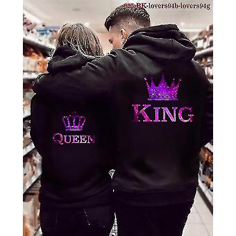 The New Couples Set King And Queen Crown Two-color Insert Hooded Sweatshirt (purple)