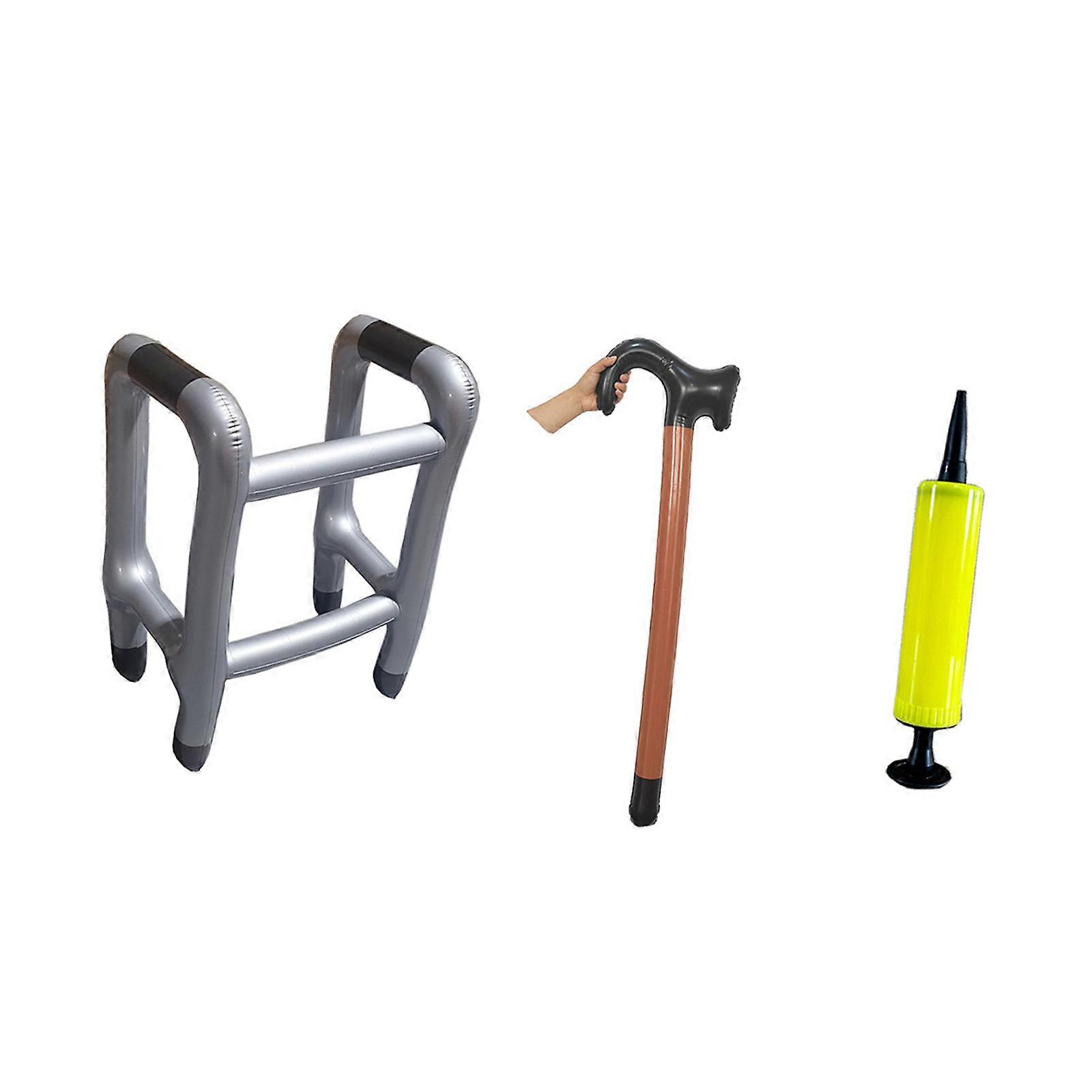 2Pcs Inflatable Walker and Cane Set Old Age Costume Accessories Gag Gift for 100th Day of School,Retirement Party Decors Multicolor