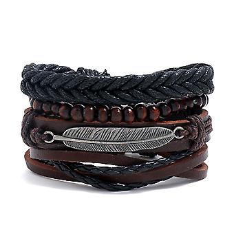 סט וינטג' פשוט 2023 צמיד לגברים צמיד עור פרה רב שכבתי שילוב צמיד אביזרי מסיבת יום הולדת