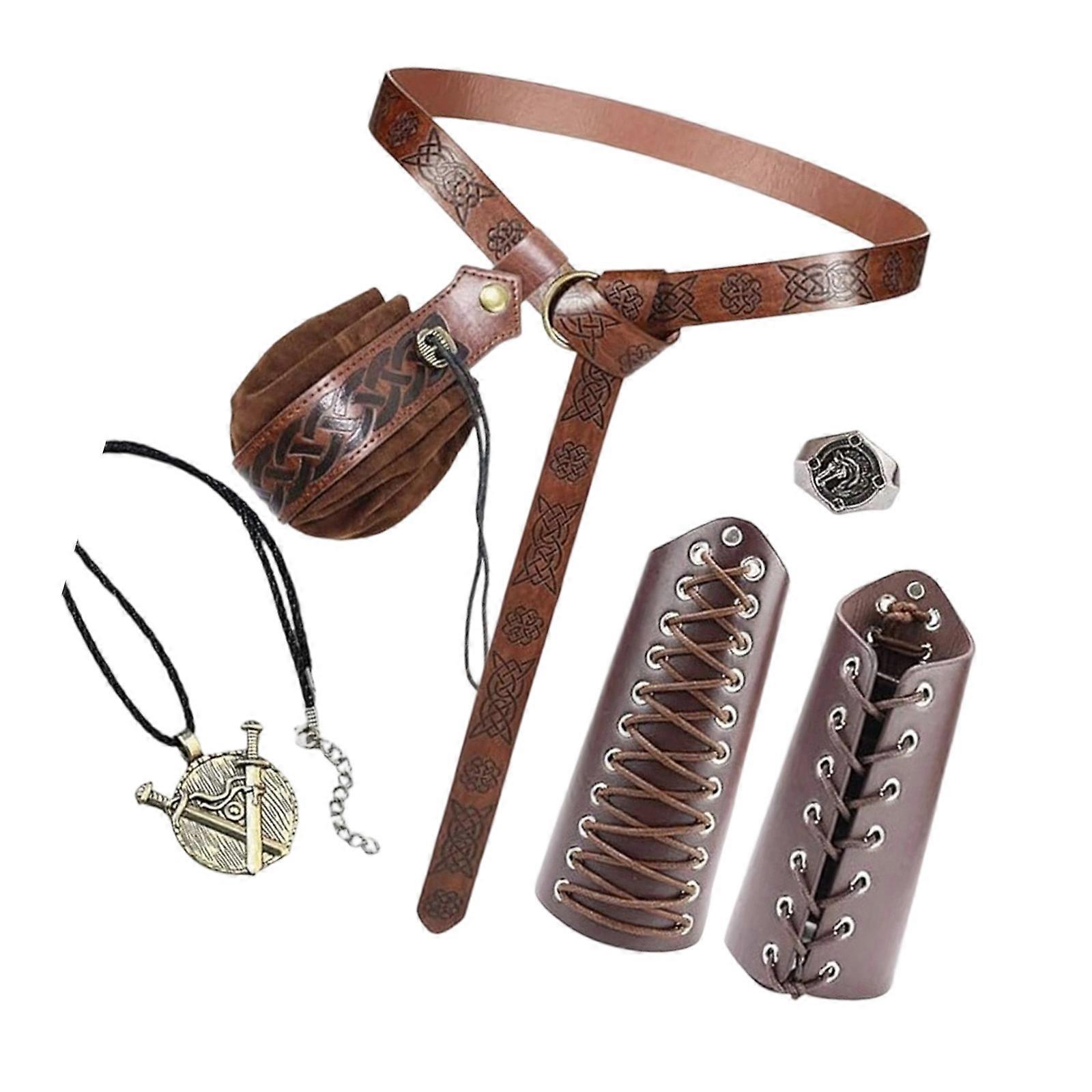 6Pcs Practical Medieval Belt Set Belts Costume Accessory Adjustable PU Leather For Themed Event Cosplay brown