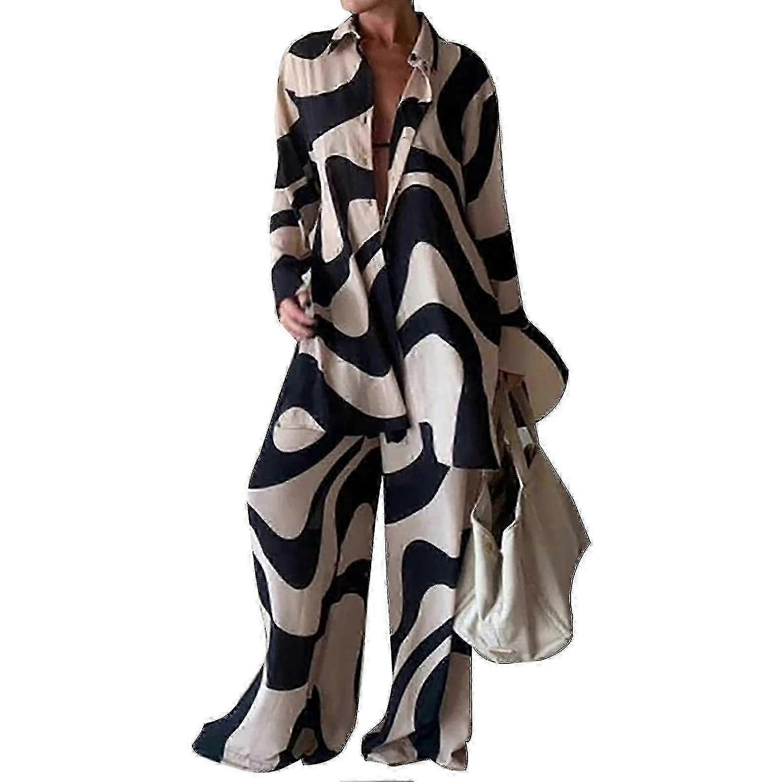 Women's long-sleeved shirt set - comfortable loose pants for work