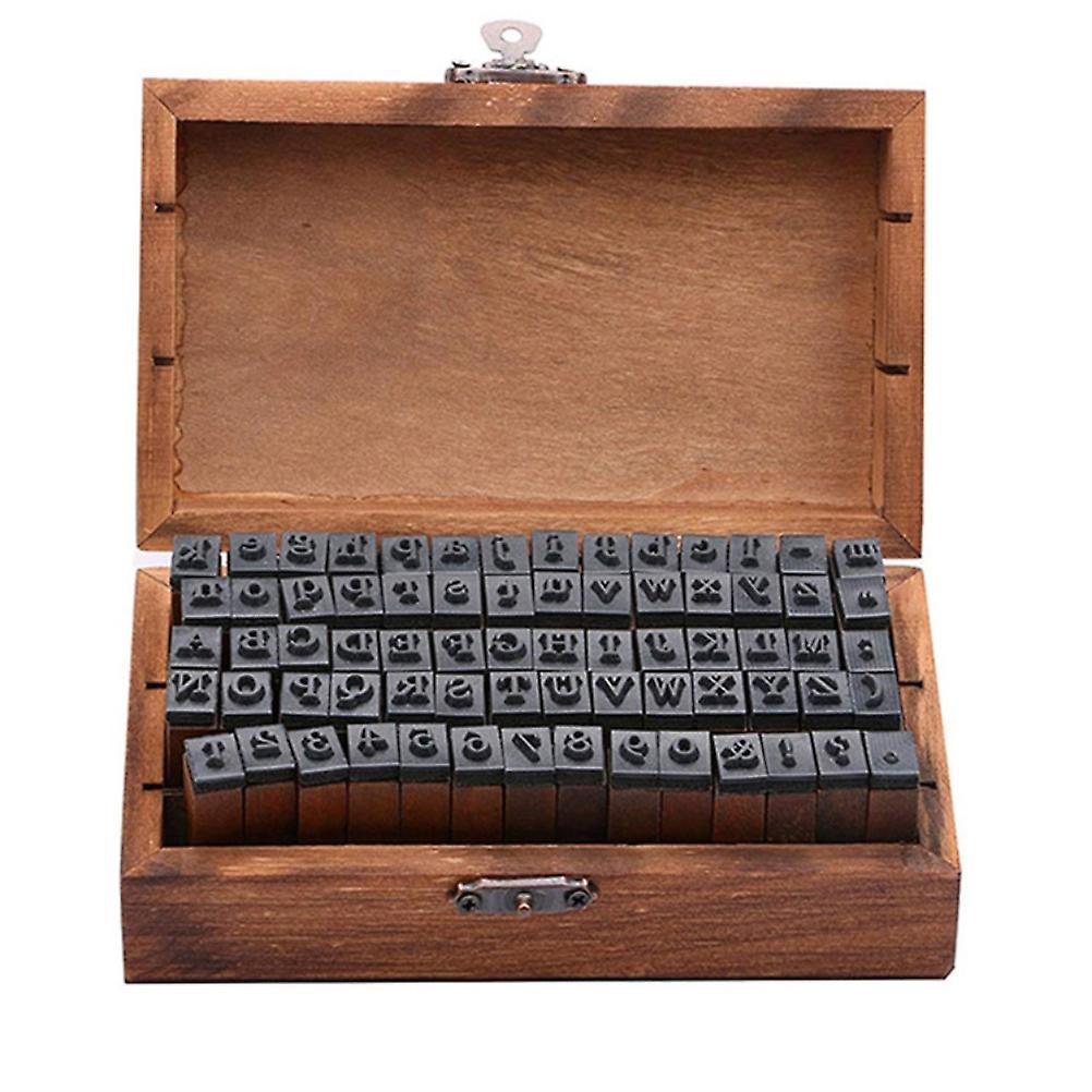 Wooden Rubber Alphabet Number Stamps Set 70pcs Dark Brown Box