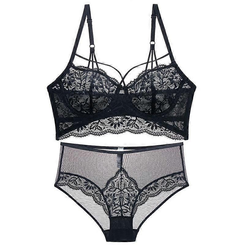 French Lace Ultra Thin Underwear Sexy Hollow Push Up Bra Set Women Flowers Classic Bandage Brassiere and High Waist Panties
