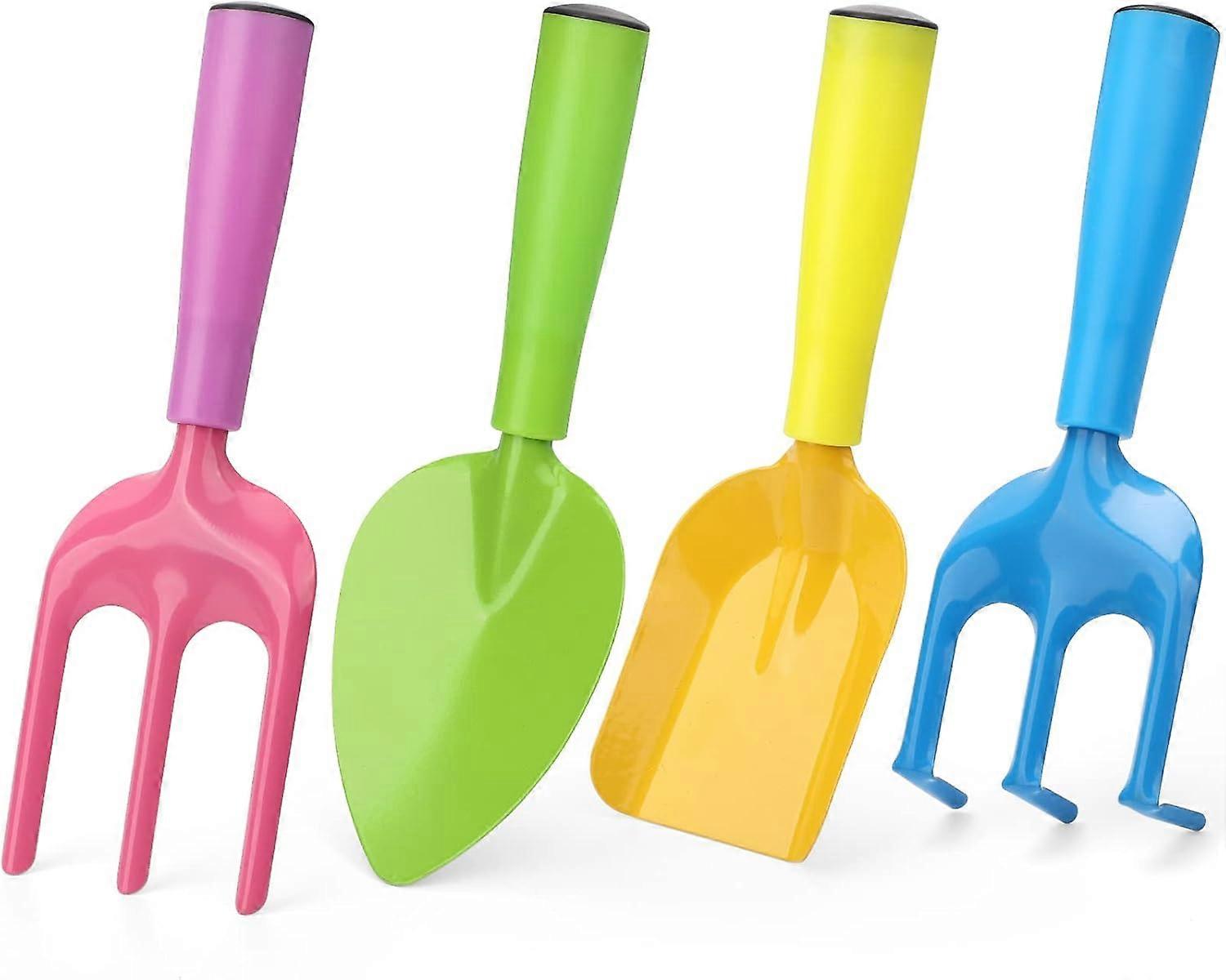 About this item Bright Colors - 4 pieces of 8" shovel set, specially designed for children to grasp the handle, macaron color can better attract the attention of children, so that they will devote themselves to play and concentrate more. Multiple Use - Suits for outdoor play, shoveling sand, loosening soil, digging the shells, cleaning the fallen leaves in the courtyard. Get away from the electronic things, let children get more close to the nature. Sturdy Tool Set - Environmental friendly ABS material plus solid iron and spray paint, smooth edges and handles, non-toxic and odorless, will not cut children's hands, adults and children can play it with great joy. Explore While Playing - Using this set to make sand, snow shoveling more fun, explore the mysteries of flowering and fruiting in play, cultivate children's hands-on ability. A must-have helper for little gardeners and little architects. Supervalue Combination - Our set includes rake, shovel, hoe, spade, non-slip design, easy to carry. Beach tool for building castles, suitable for children over 3 years old, explore new ways of digging, accompany your babies growth. NOTICE: CHOKING HAZARDS SMALL PARTS, NOT FOR CHILDREN UNDER 3 YEARS OLD.