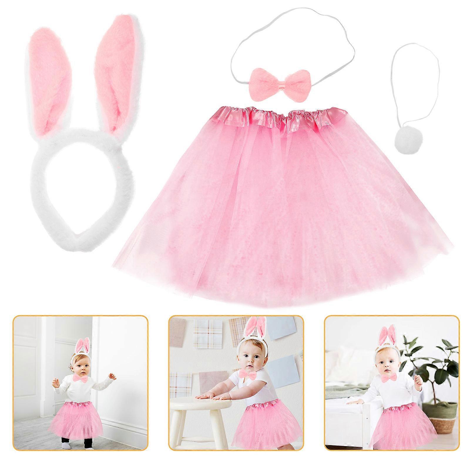 Kids Mesh Skirt Set with Rabbit Hairband for Party 8Pcs Pink Outfit