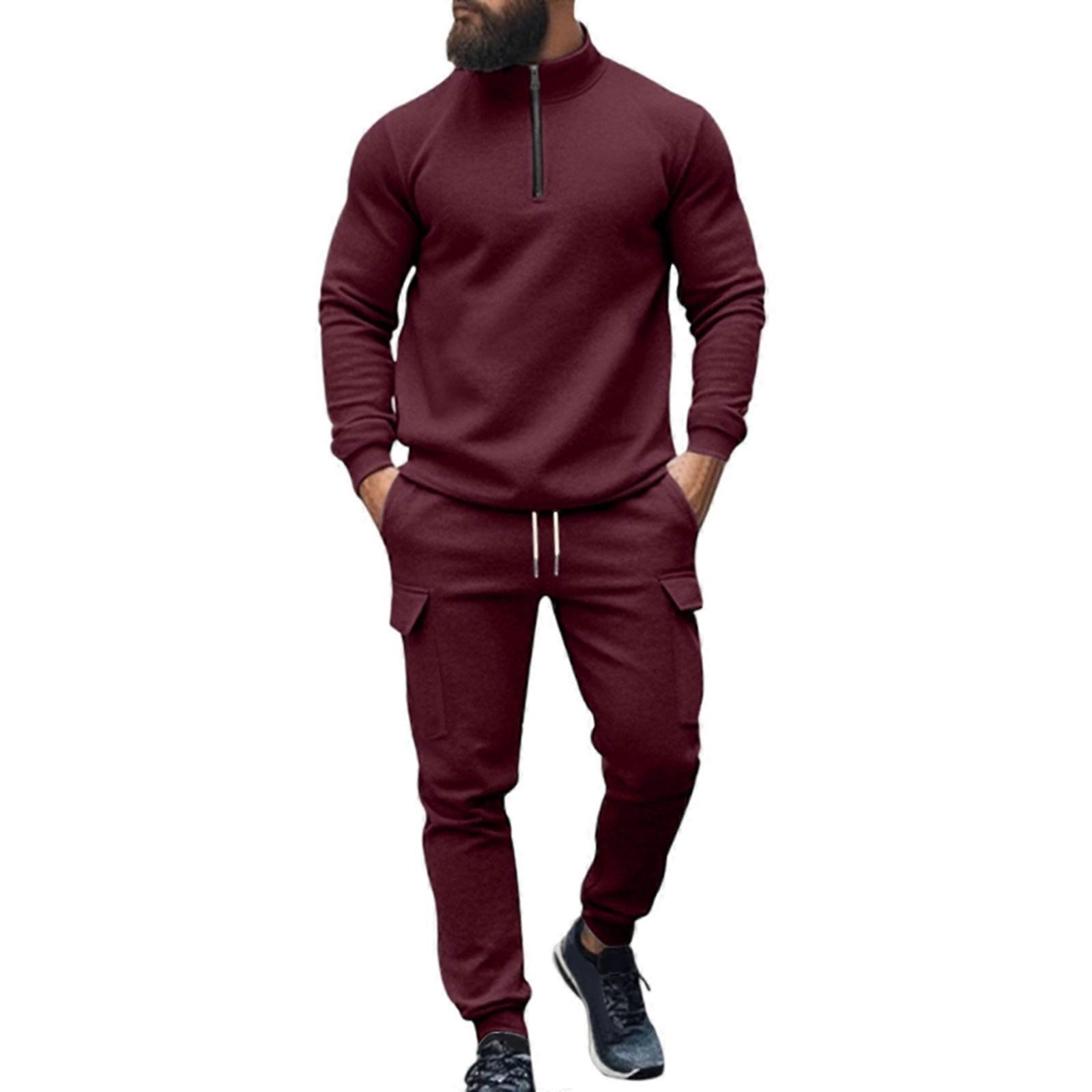 Tracksuit Set for Men 1/4 Zip Hoody Sweatshirt and Sweatpants Set Long Sleeve Sweat Suits Cargo Joggers Outfit Burgundy XL