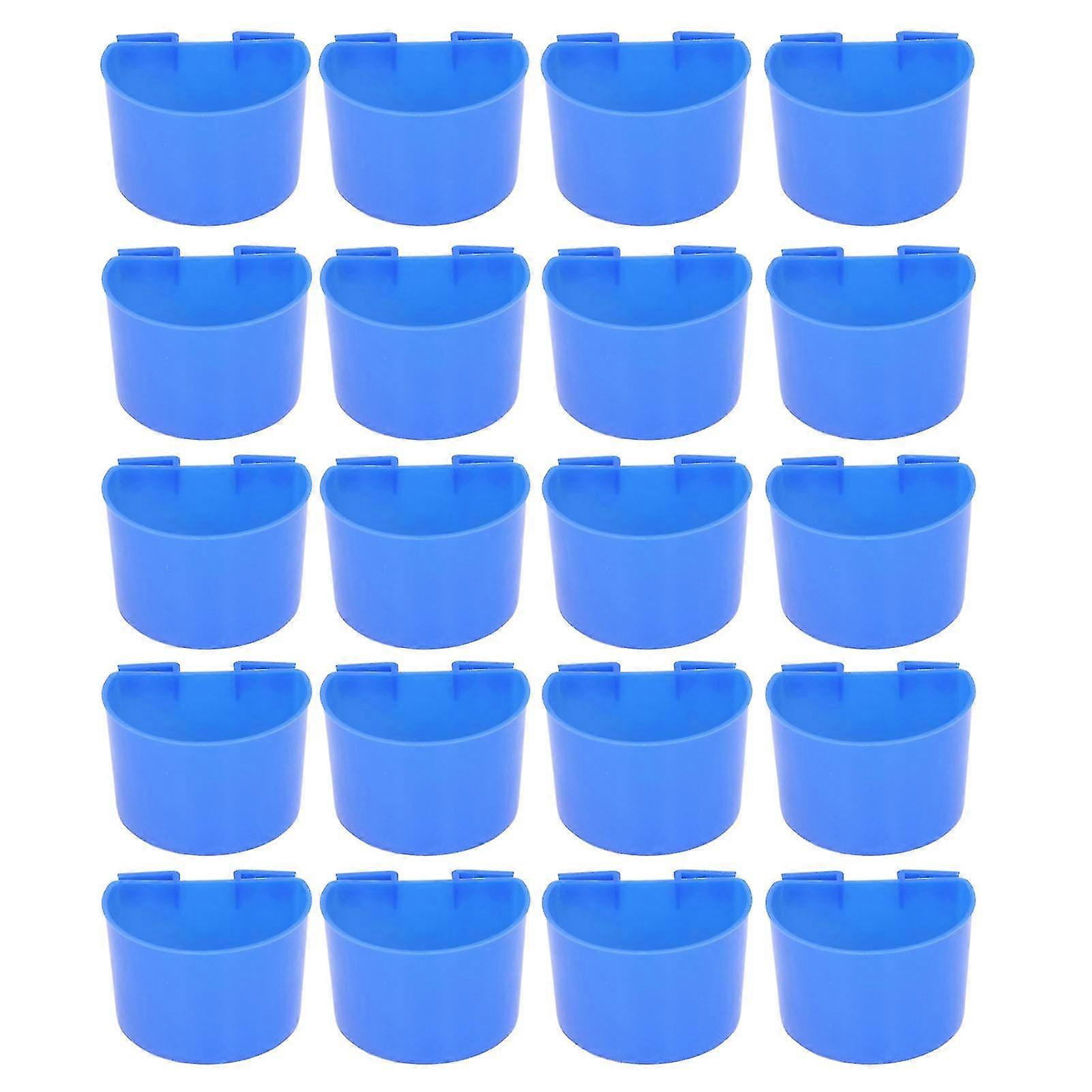 Blue Plastic Parrot Water Feeding Cup Set - 20Pcs Birdcage Feeder Trough Kit, 9.6cm/3.54x2.36in