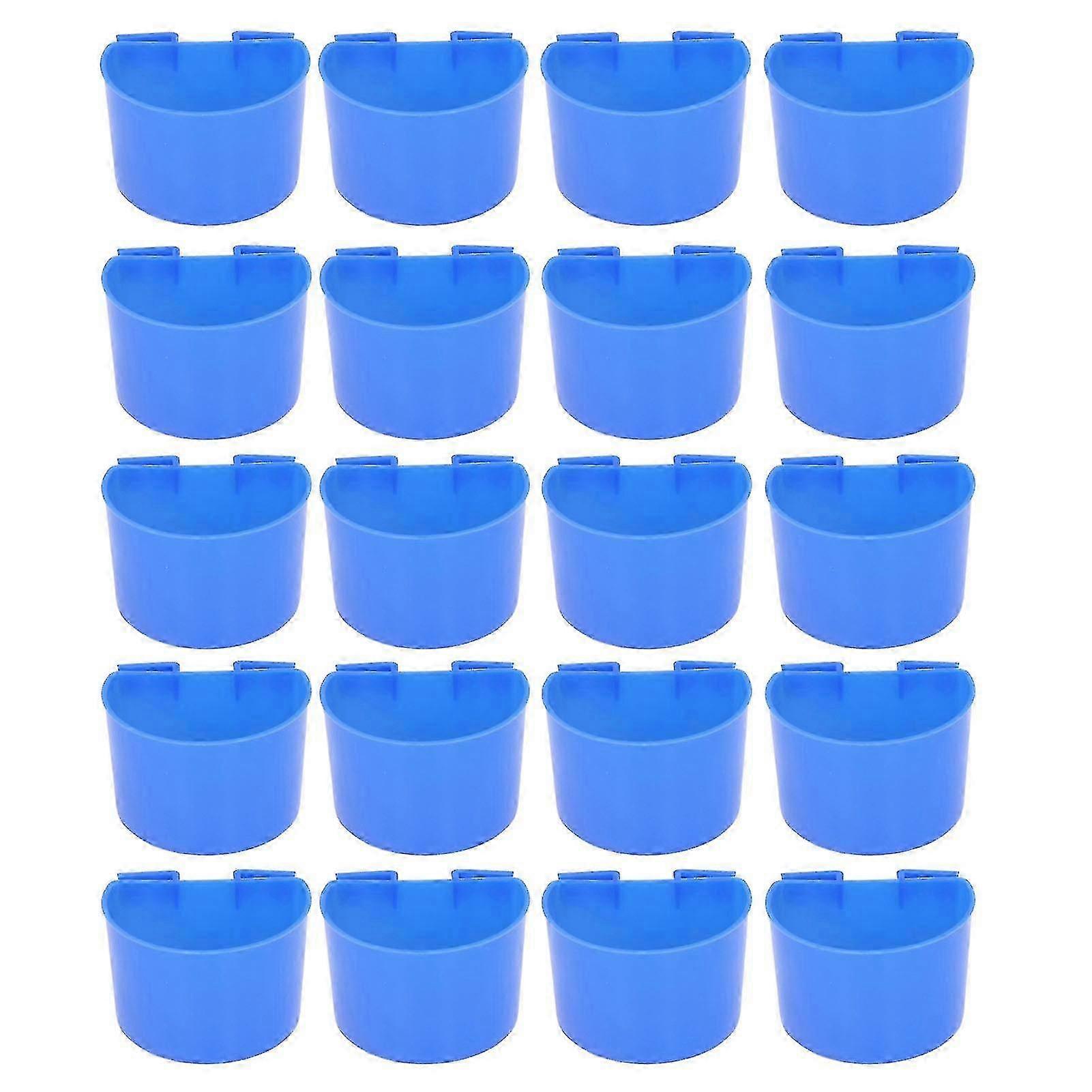 Blue Plastic Parrot Water Feeding Cup Set - 20Pcs Birdcage Feeder Trough Kit, 9.6cm/3.54x2.36in