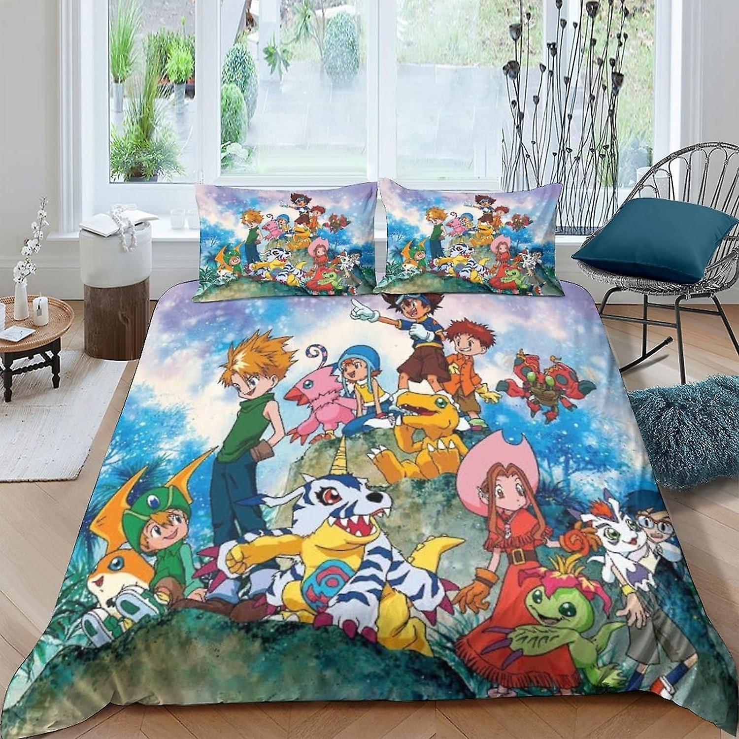 EKENOZ Digimon Duvet Cover Set Anime Game Comforter Cover Printed Bedding Quilt Cover for Bedding Decro,Ultra Soft Microfiber Hidden Zipper Bed Cover