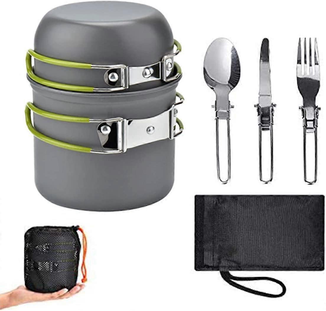 Outdoor Cookware Set for 1-2 Person Portable Camping Stove with Tableware,Green