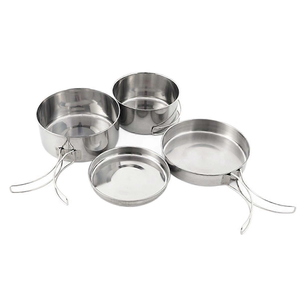4Pcs Stainless Steel Camping Cookware Set - Pot, Bowl & Utensils