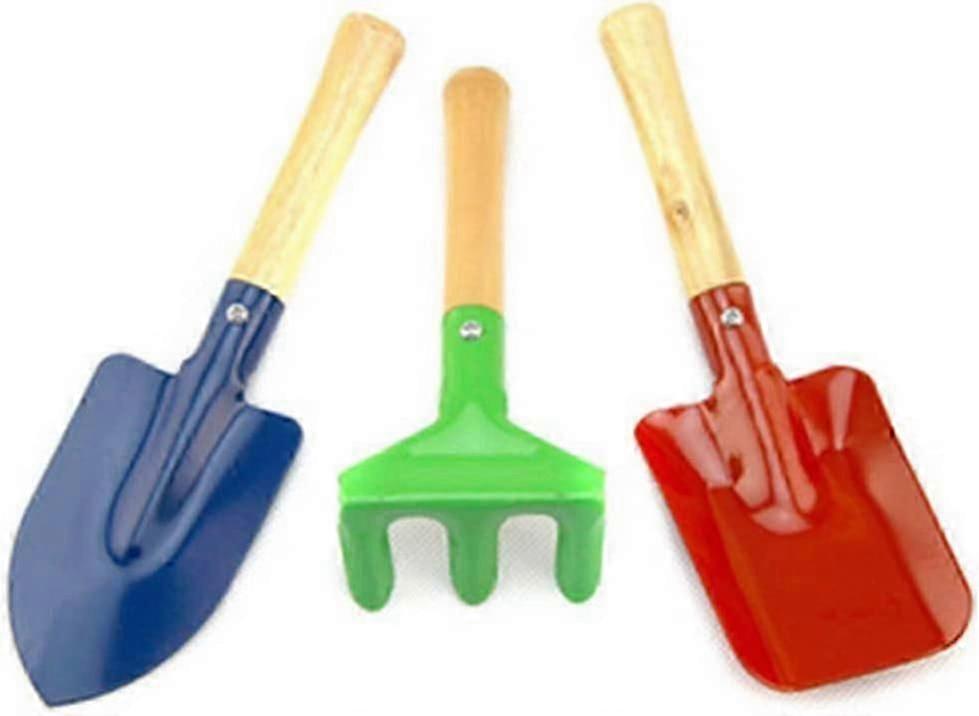 Kids Garden Tools Set - Mini Spade, Leaf Rake, Outdoor Learning Toys (Green/Red/Blue, 3pcs)
