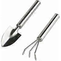 Gardening Tool Set, 2 Pieces Stainless Steel Handle Garden Hand Tools Miniature Gardening Rake Shovel for Seedlings, Bonsai, Succulents