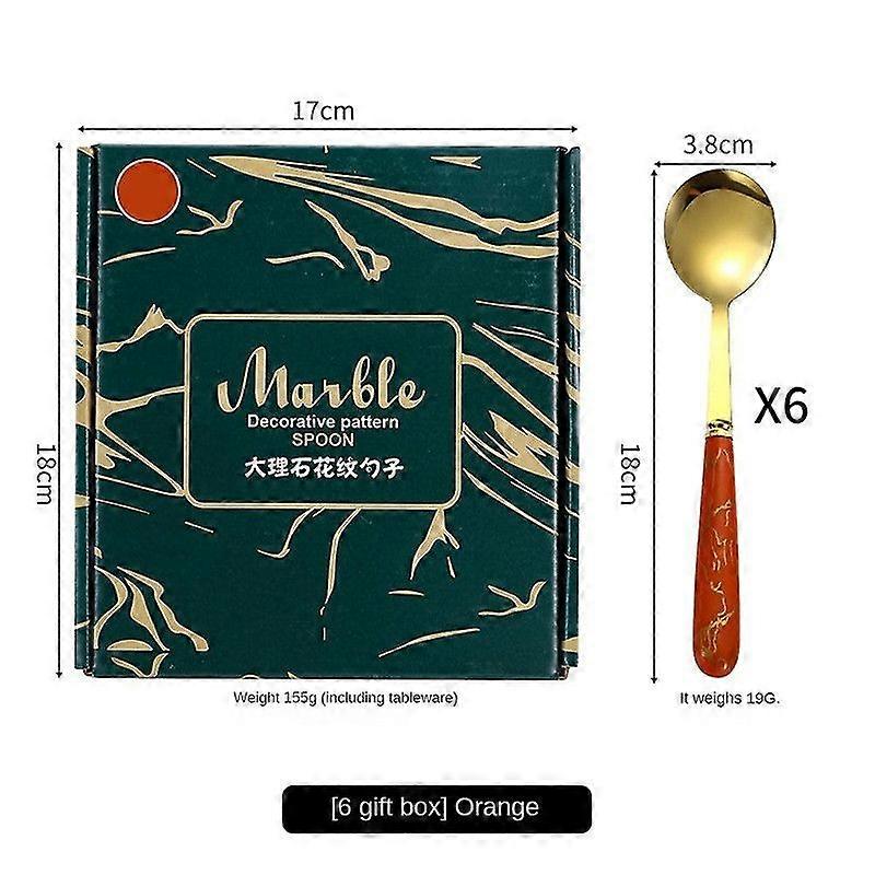 6 Piece Stainless Steel Flatware Set Marble Pattern Spoon Gift Box Set Household Light Luxury Retro High Value Plastic Handle Stainless Steel Tablewa