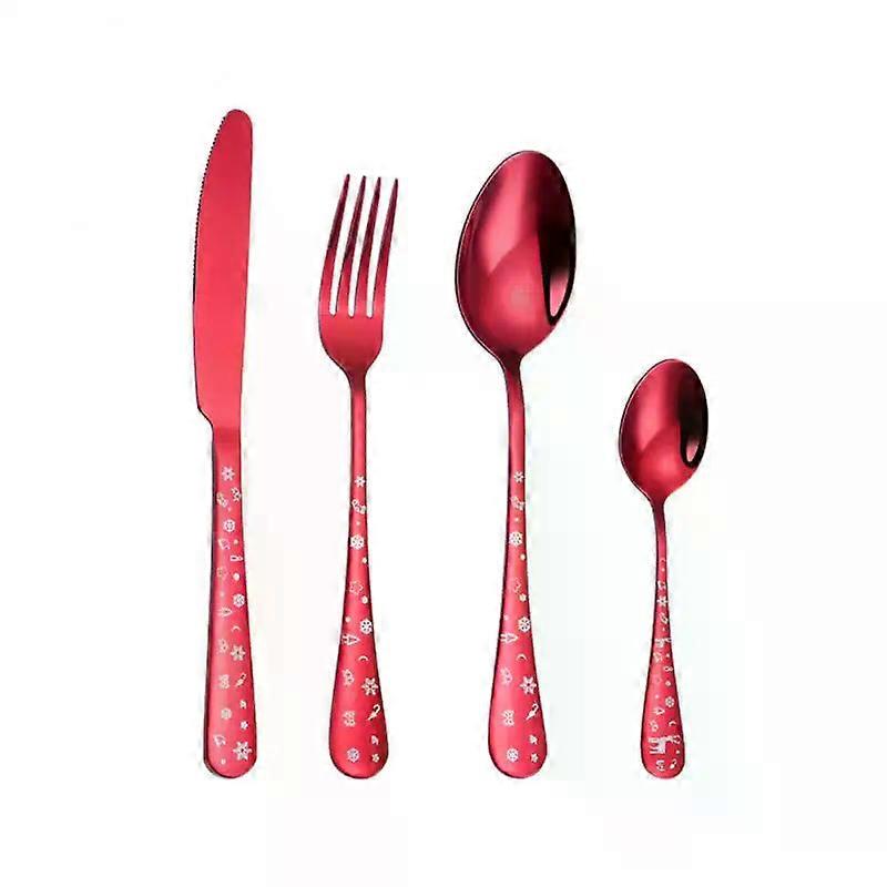 High Quality Flatware Set Cutlery Kitchen Food Knife Fork Spoon Red Green Dinnerware Kitchen Tableware Stainless Steel /set