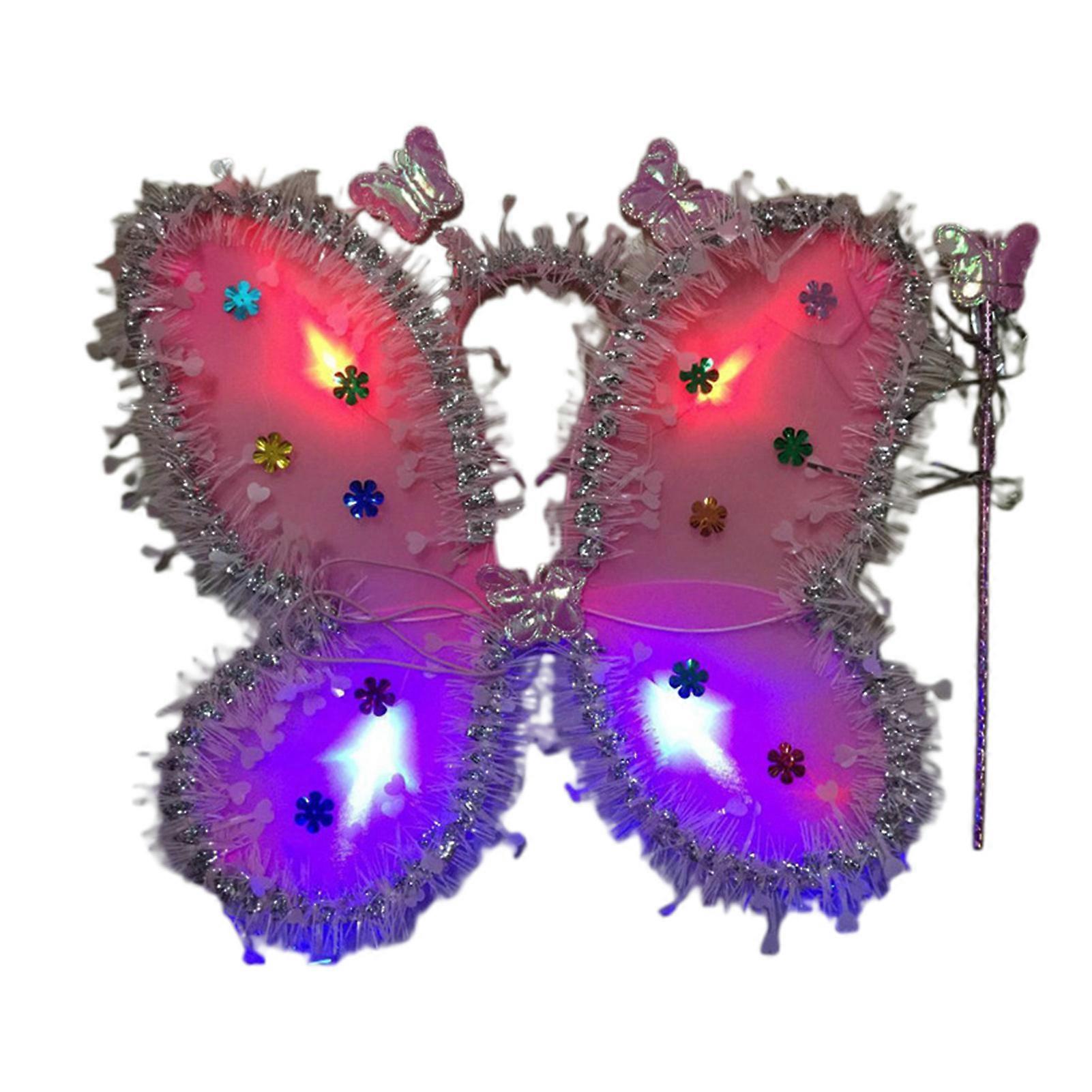 Kids Butterfly Wings Set LED Glowing Fairy Wing Butterfly Headband Tassel Wand Kit Perform Show Dress Up Costume Props for Girls