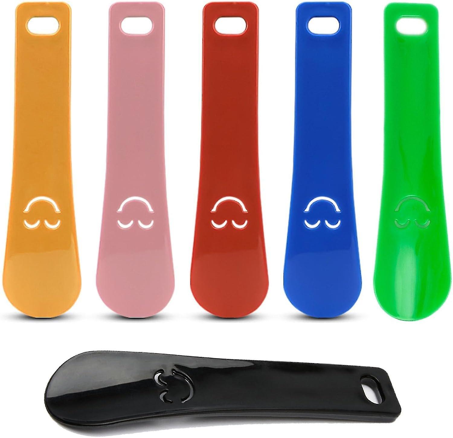 Shoe Horn Plastic Shoe Spoon Set Of 6, Very Stable Design For Men, Women, Kids, Seniors (black/blue/pink/red/green/yellow)