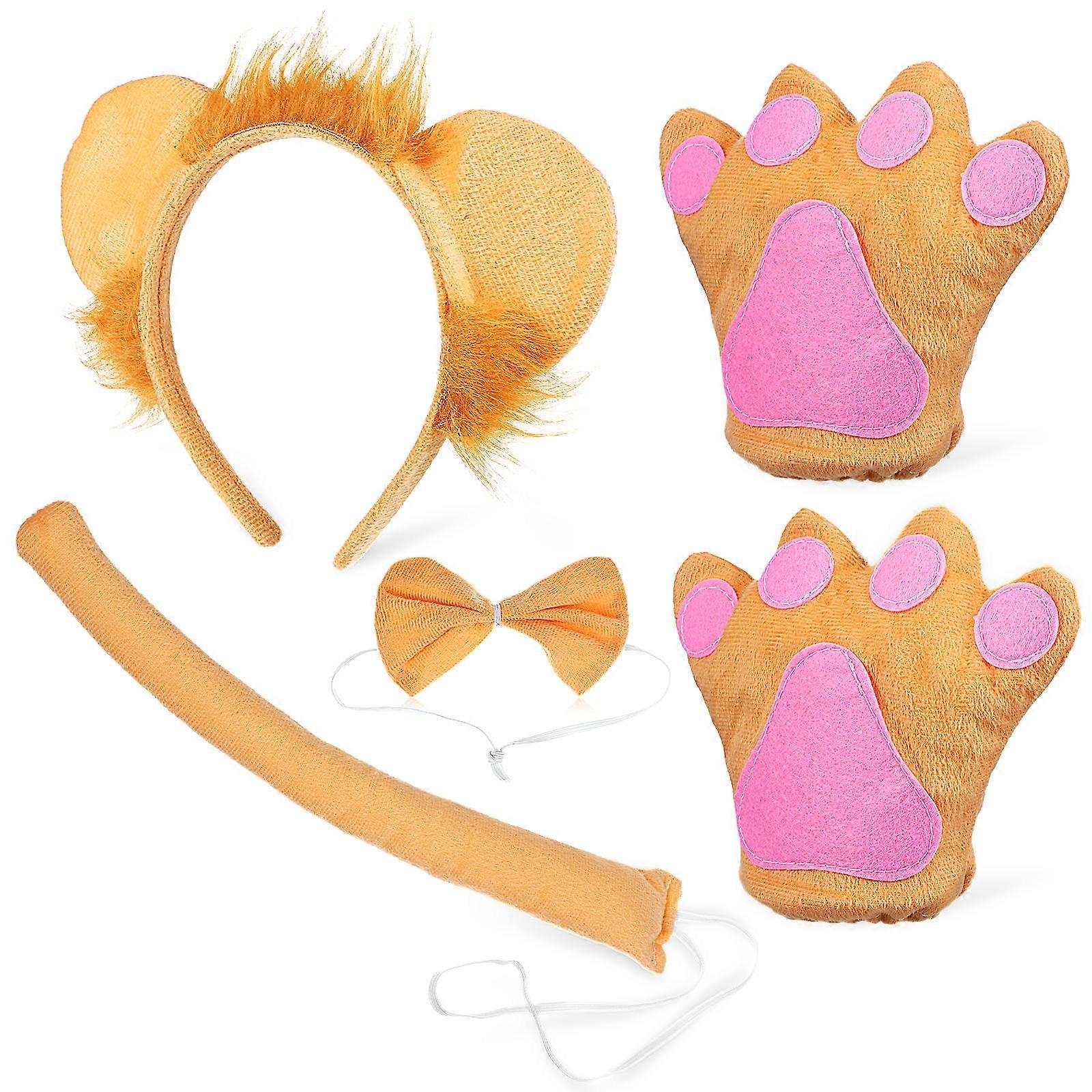 Cosplay Animal Costume Lion Headband Tail Gloves Set Suitable For Women Girls 4Set Assorted Color