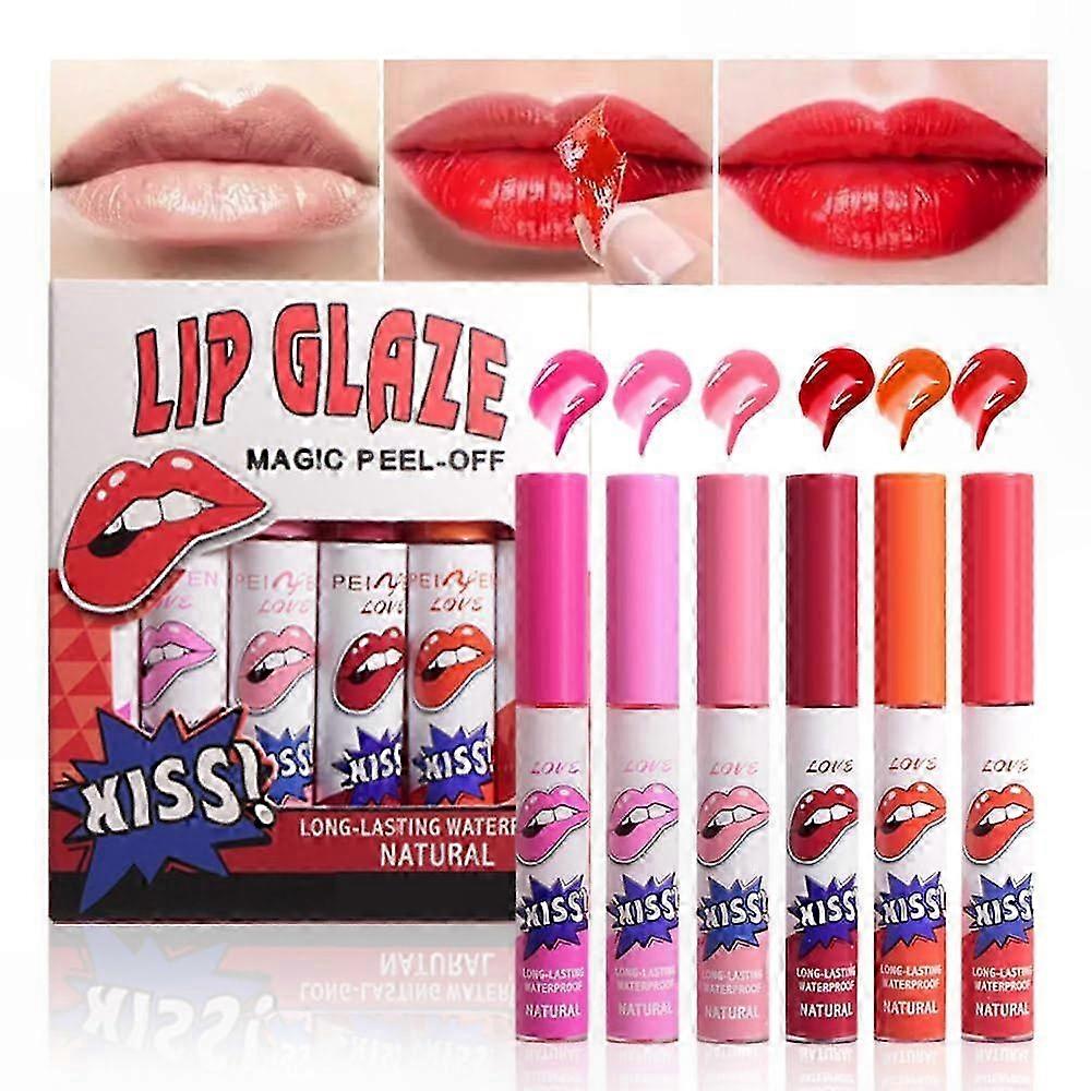 6 Color Peel-Off Lip Stain Set, Waterproof Liquid Lipstick, Non-Sticky Lip Glaze for Long-Lasting Wear