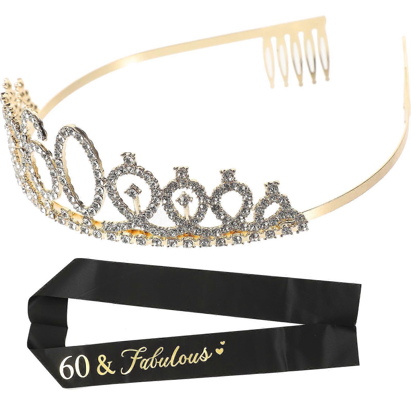 Rhinestone Birthday Crown and Sash Set Stylish Tiara for Celebration Party Accessories