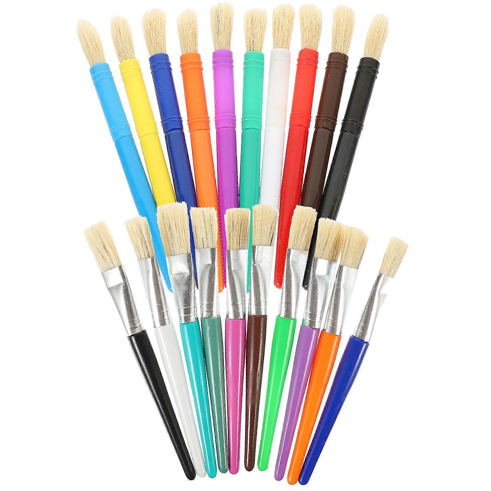 Watercolor Brush Set Kids Ergonomic Handle Round Flat Heads Art Party 20Pcs