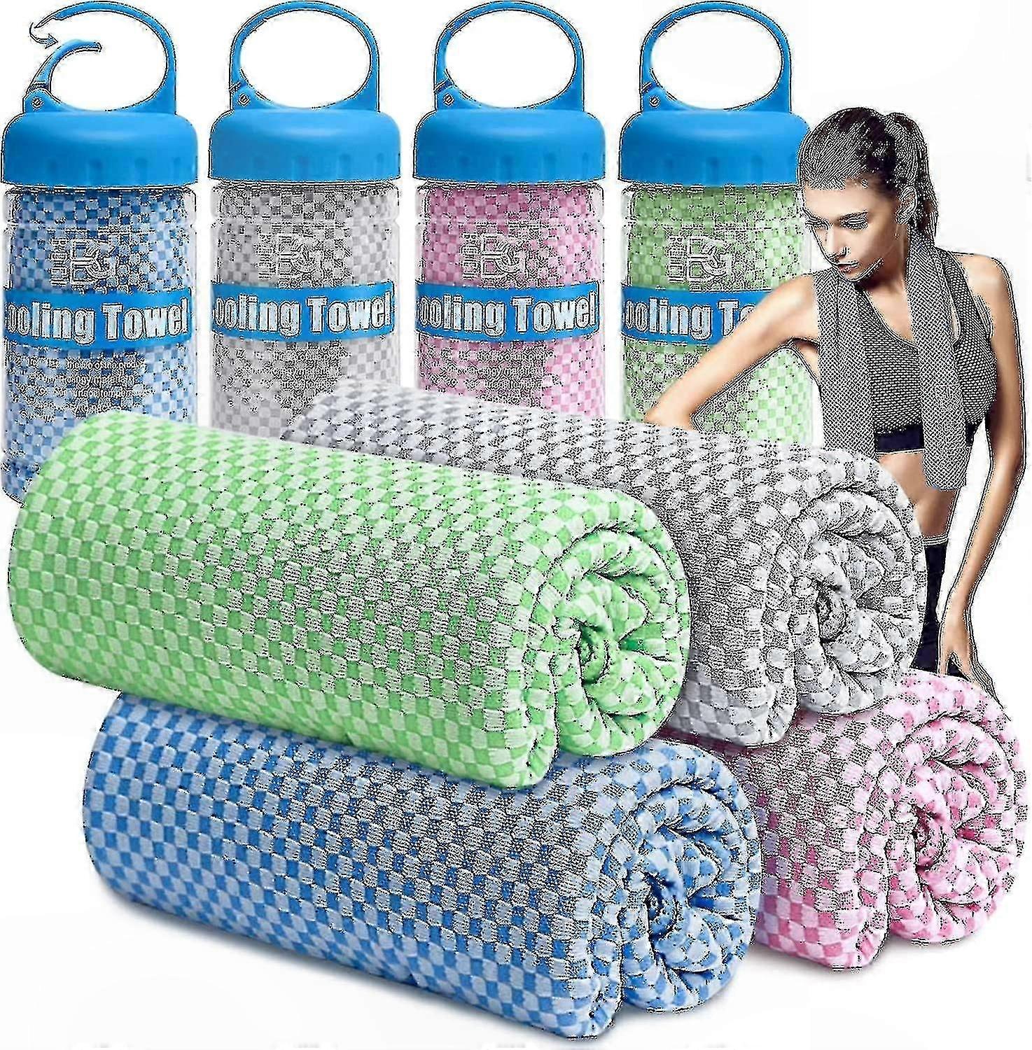 Instant Cooling Towel Set - 4 Pack, 40"x12" Soft Fabric for Neck and Face Refreshment