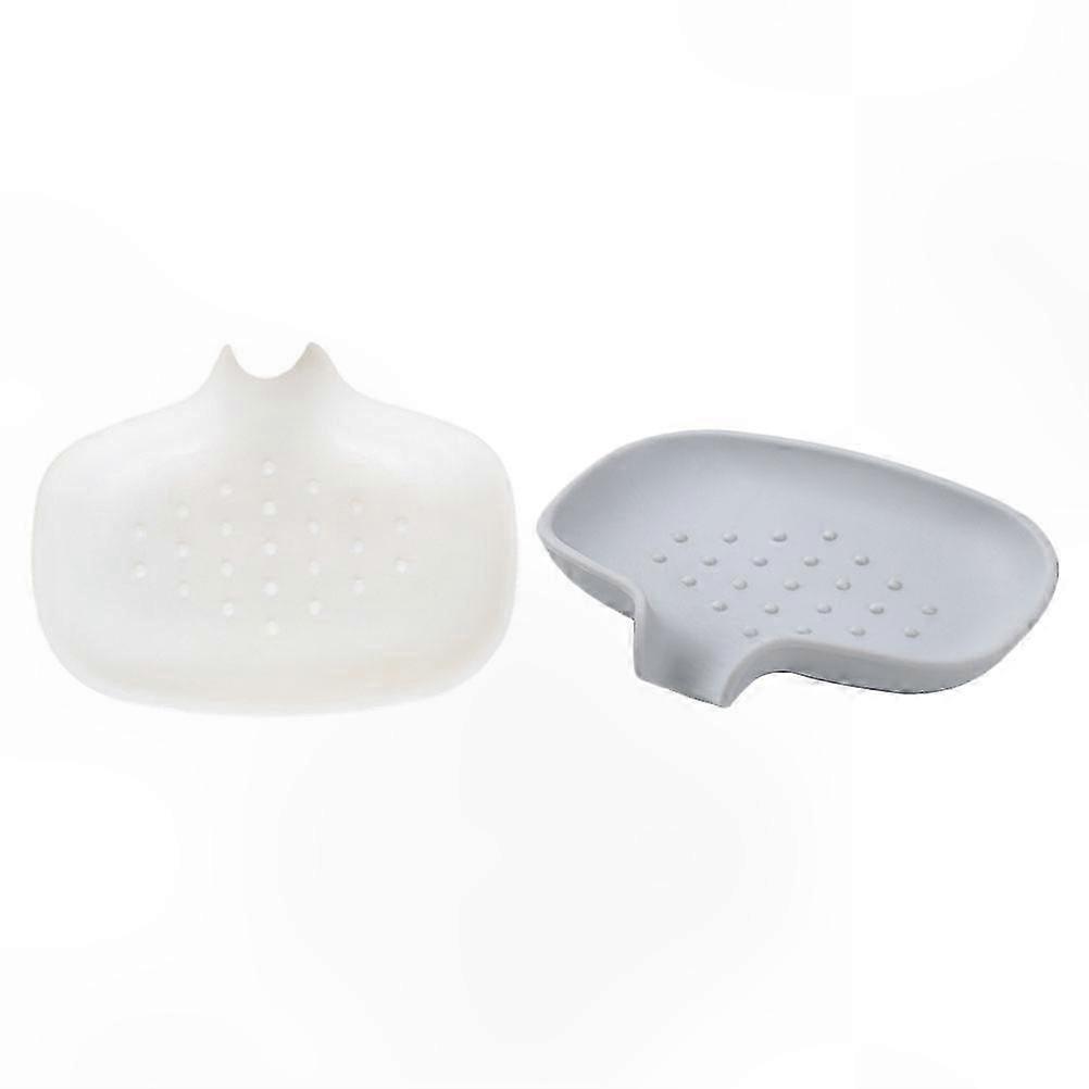 Bathroom Soap Holder Set, 2-Piece Anti-Slip White and Grey Organizer for Accessories