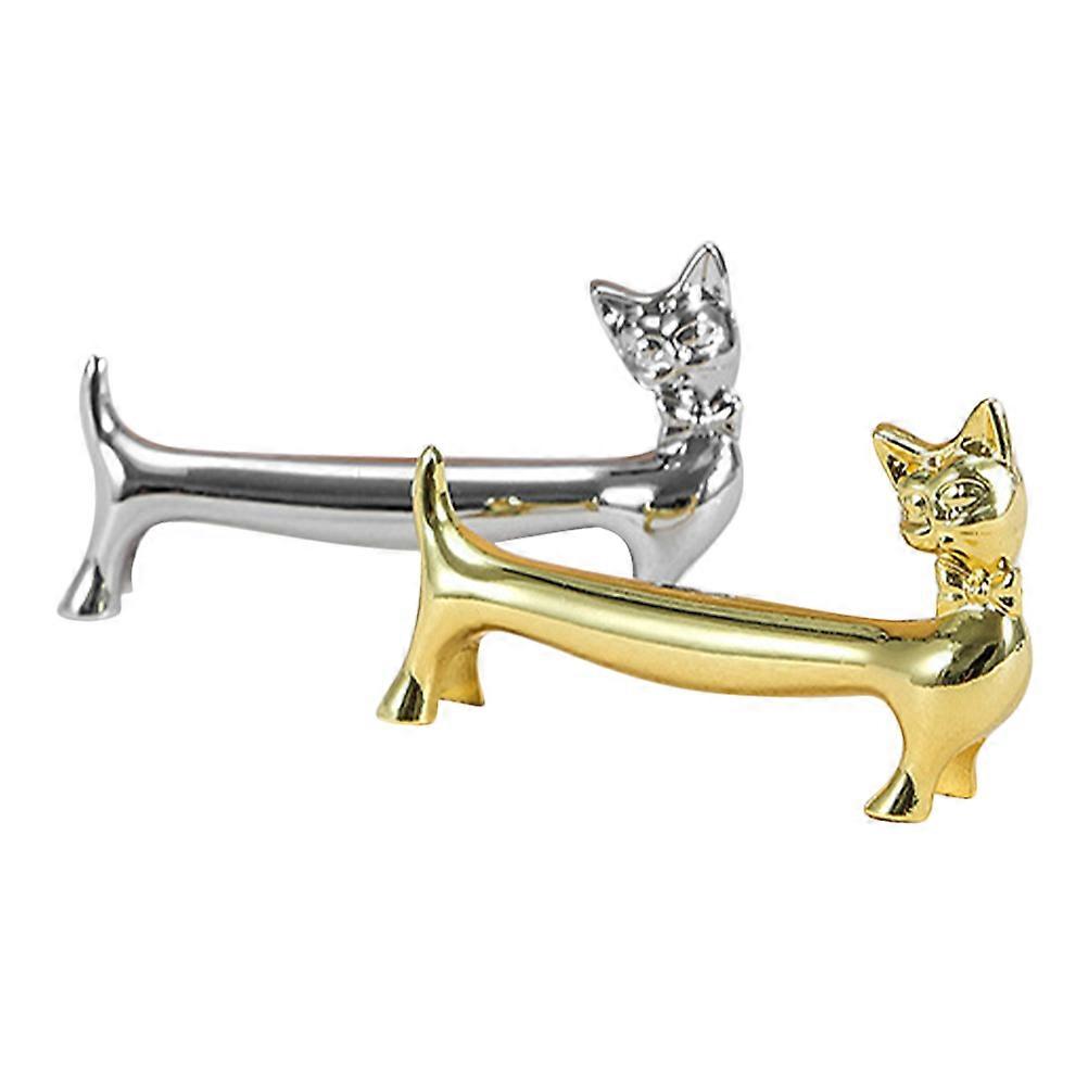 Gold Plated Cat Chopstick Holder Set of 2 Zinc Alloy Decorative Utensil Stand for Dining Table, Cute Cat Shape Kitchen Accessory for Home and