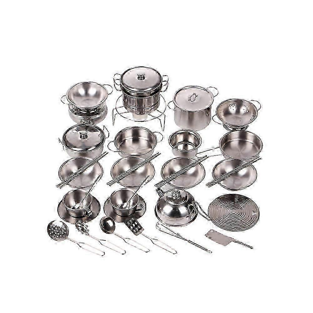 Pretend Kitchen Set, Stainless Steel Cookware Toys for Realistic Role Play & Creativity, Mini Cooking Set for Kids Over 3 Years, Fine Motor Skills