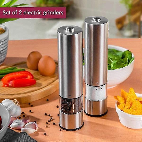 Electric Salt and Pepper Grinder Set Stainless Steel Battery Operated 2 pcs
