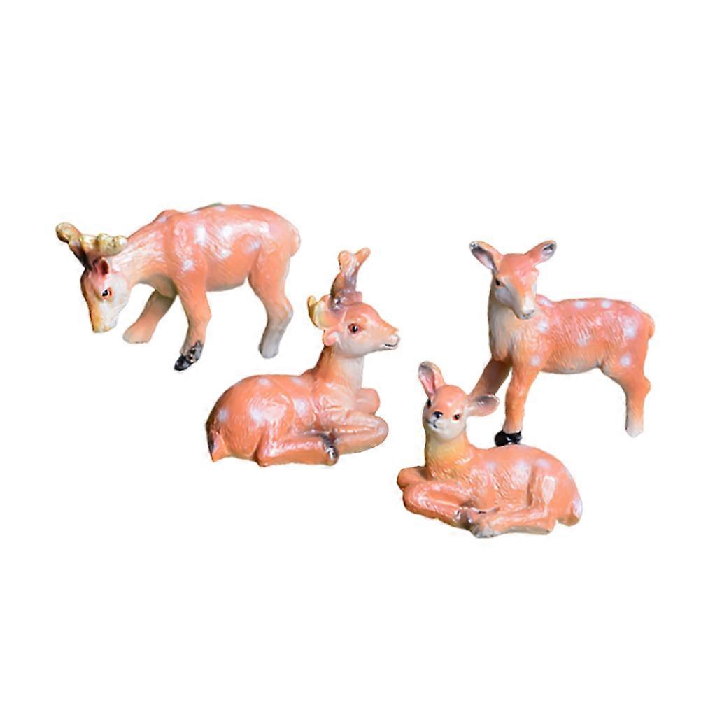 Adorable Deer Resin Crafts Set for Micro Landscape & Home Office Decor – 4pcs Cute Animal Ornaments